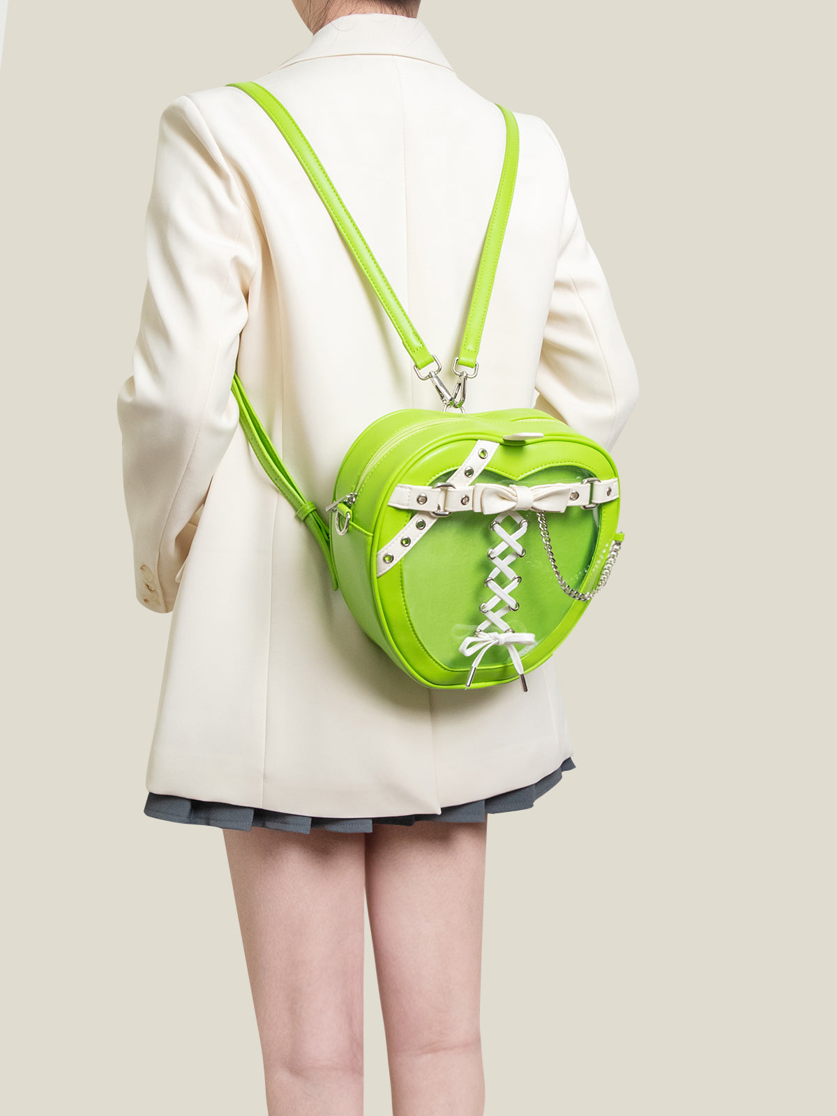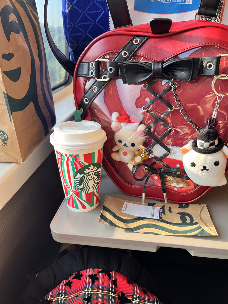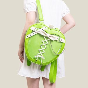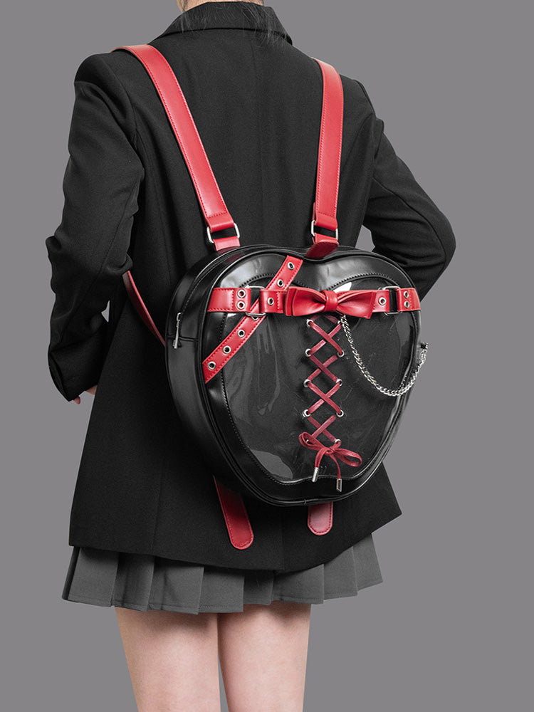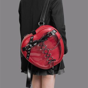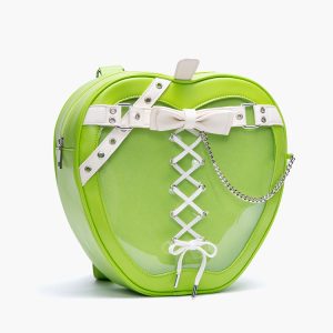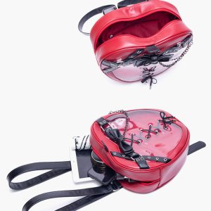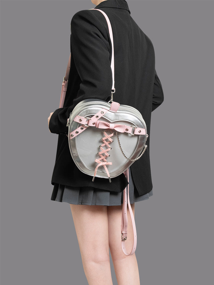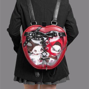 Gothic Style Apple-Shaped Ita Backpack – Unique Design with Belt and Chain Details