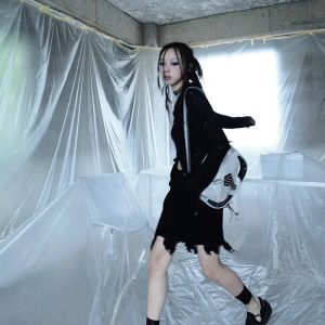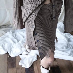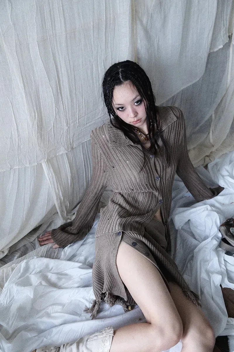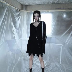 The Grunge Distressed Cardigan & Mini Skirt Two Piece Set brings an edgy yet cozy vibe to your wardrobe. Crafted with a ribbed texture, the cardigan features a button-up front and intentionally distressed details for a worn-in, rebellious aesthetic. The raw hem on the skirt and subtle distressing throughout the cardigan create a vintage-inspired, undone feel that adds character to any outfit.