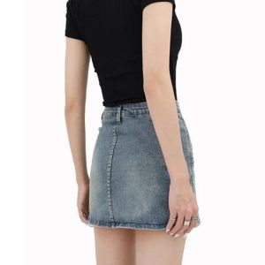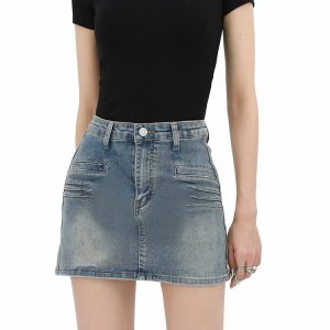 Grunge Fake Pocket Denim Mini Skirt
