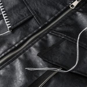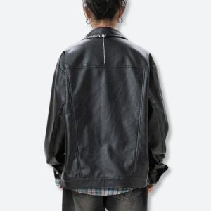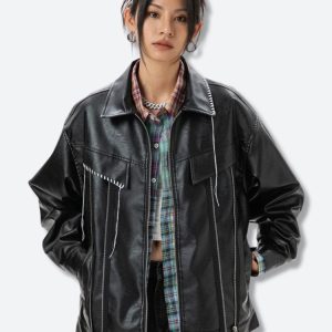This Grunge Aesthetic Faux Leather Jacket adds an edgy vibe with its sleek, glossy finish. The oversized fit is perfect for layering, pairing effortlessly with distressed jeans or cargo pants for standout street style.
