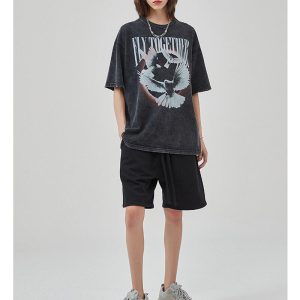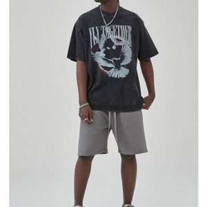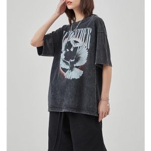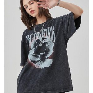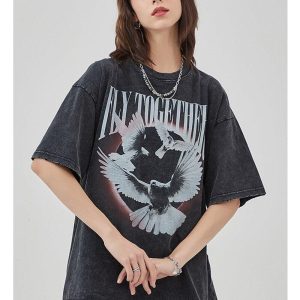 Immerse yourself in the grunge aesthetic with this unisex tee. Featuring a digital print of flying birds at the front, short sleeves, and a crew neck, it’s the perfect embodiment of rebellious chic. Express your individuality in comfort with its cotton fabric.