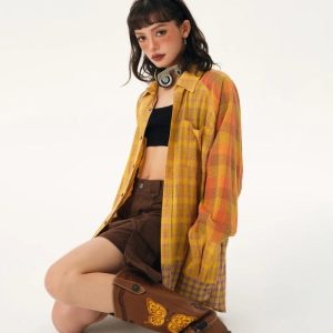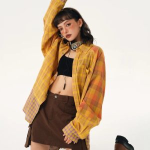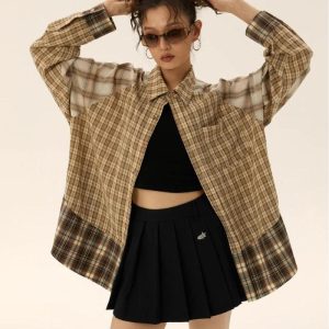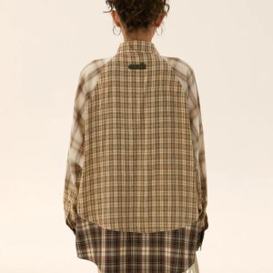 Dive into the grunge aesthetic with our Multi Pattern Plaid Shirt. This unisex piece features a chest pocket, button fastening, crew neck, and long sleeves, making it perfect for a cool, punk-inspired casual style.