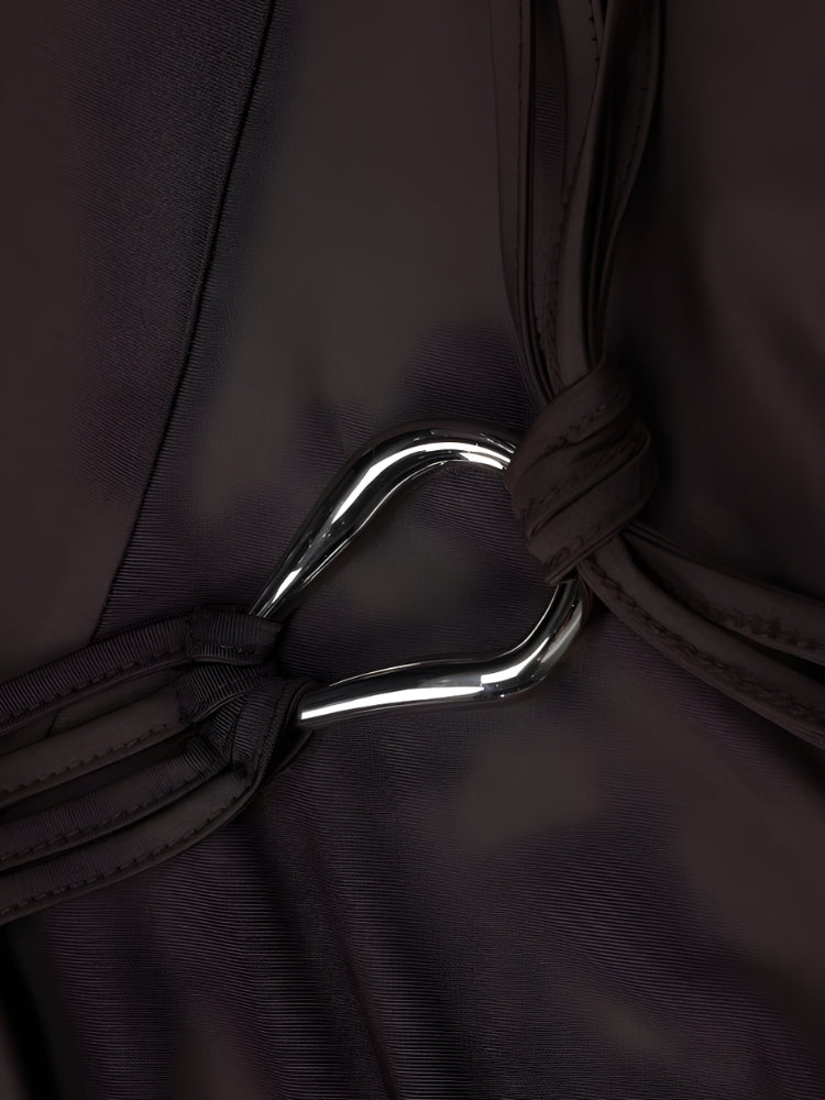 Sleek, sultry, and unapologetically cool. This off-shoulder mini dress serves grunge-girl vibes with a modern twist. The fitted bodice, asymmetrical hem, and edgy rope belt with metal loop detail make it a go-to for low-effort, high-impact style.