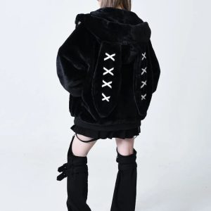 Grunge Rabbit Ear Plush Jacket