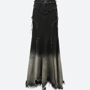 Raw tassels, deconstructed seams, and a gothic flare give this maxi skirt major attitude. A staple piece for grunge or fairycore outfits, this skirt adds movement and edge to your fit.