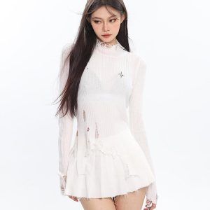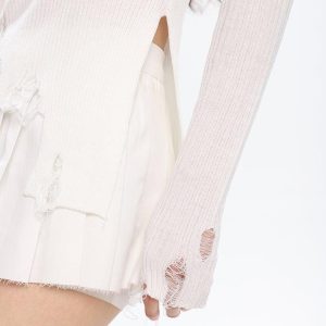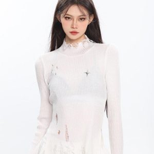 Embrace your edgy side with our Grunge Turtleneck Distressed Sweater. Crafted from soft cotton, this distinct knit piece features a distressed detail, bringing a daring, unconventional twist to your everyday outfit while channeling grunge appeal.