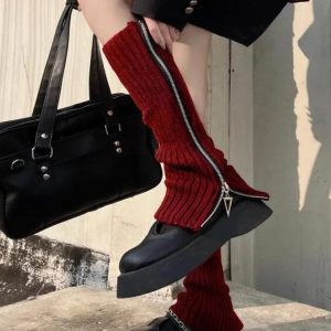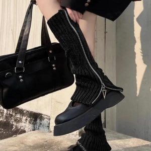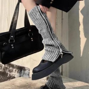 Stay warm and trendy with these grunge-style knitted leg warmers. The corduroy and ribbed design, combined with a convenient zip fastening, make them perfect for streetwear looks in the cooler months of winter and fall.