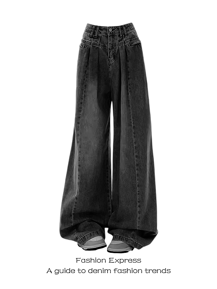High Waisted Black Gray Pleated Wide Leg Jeans Women Loose S – Outfit Ideas