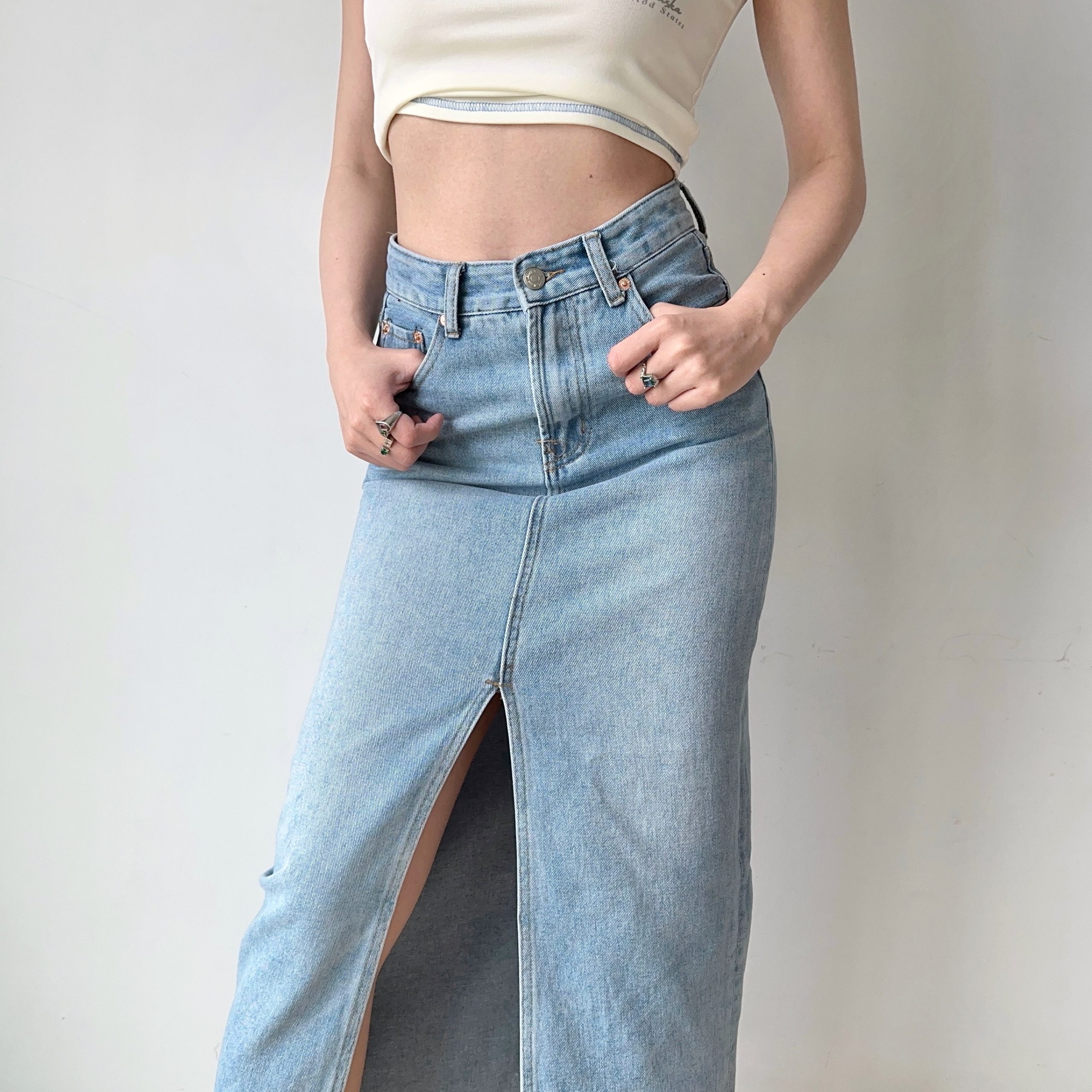 High Waisted Water Washed Denim Split Skirt Women Mid Length Fitted Pencil Skirt in High-quality product featuring prom dresses, spring outfits, business casual outfits and more. Modern design that fits the latest trends. Premium materials ensure durability and comfort. Order now for special offers! Product designed with attention to every detail. Suitable for all occasions and personal styles.