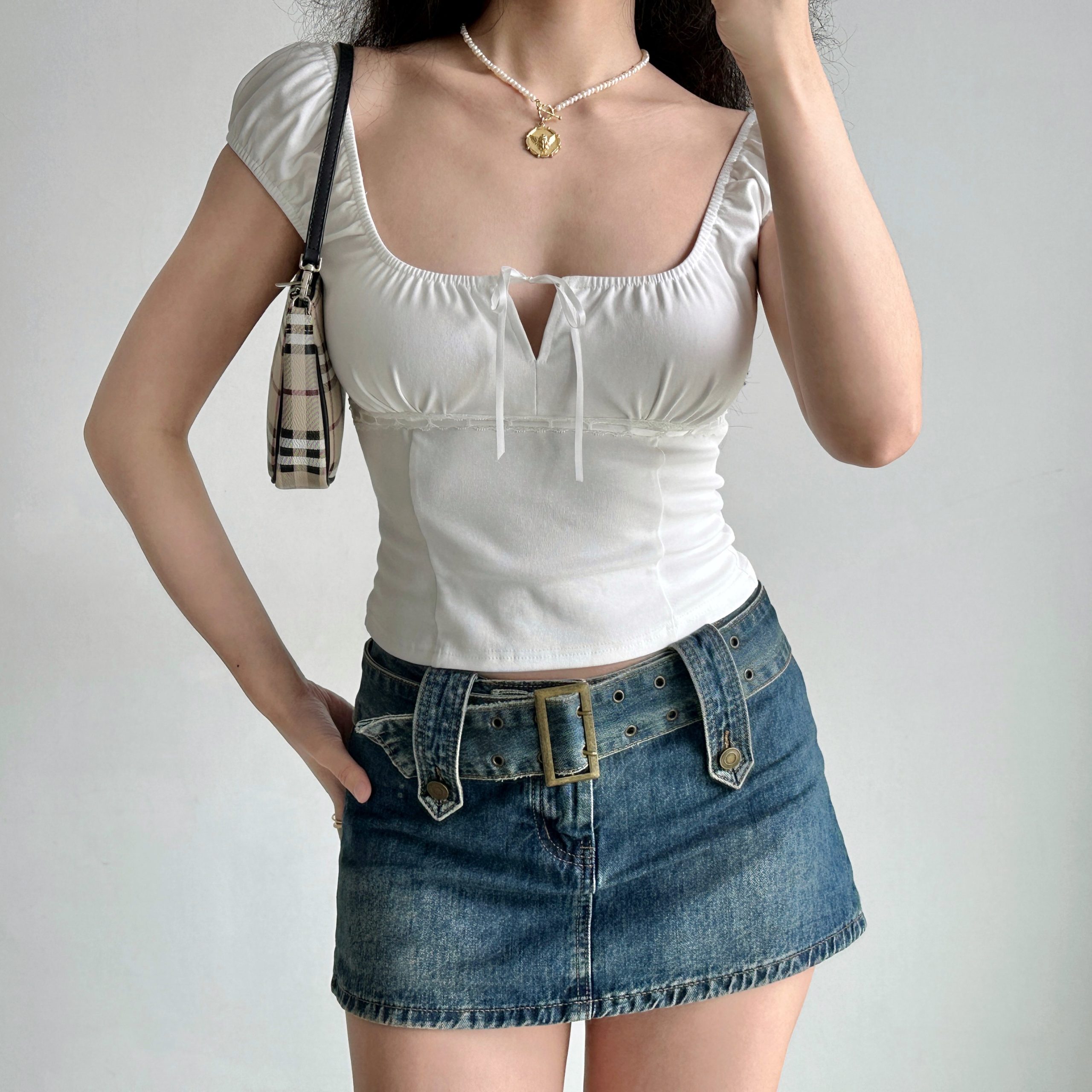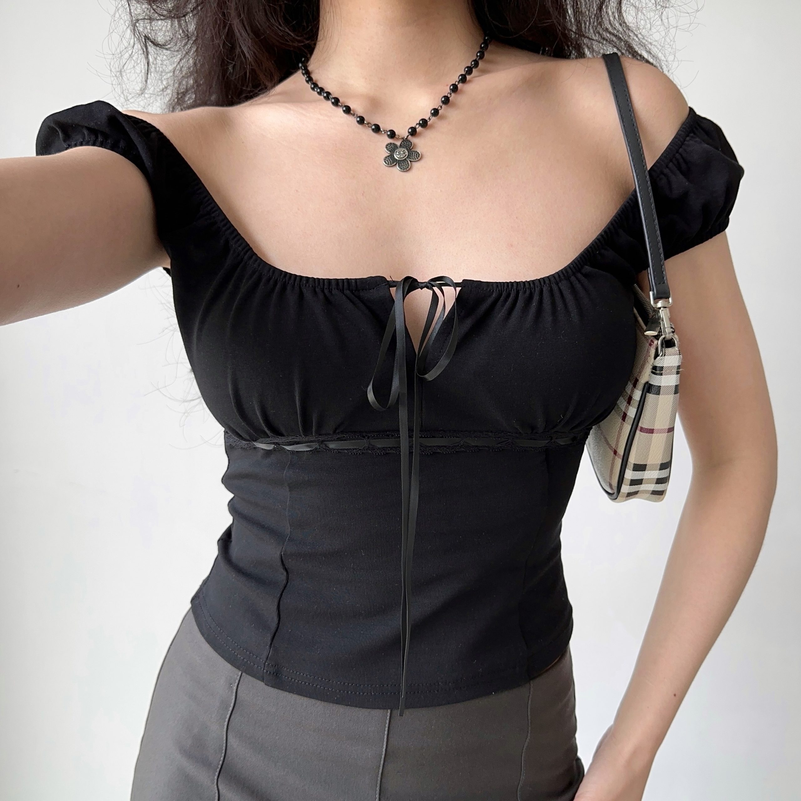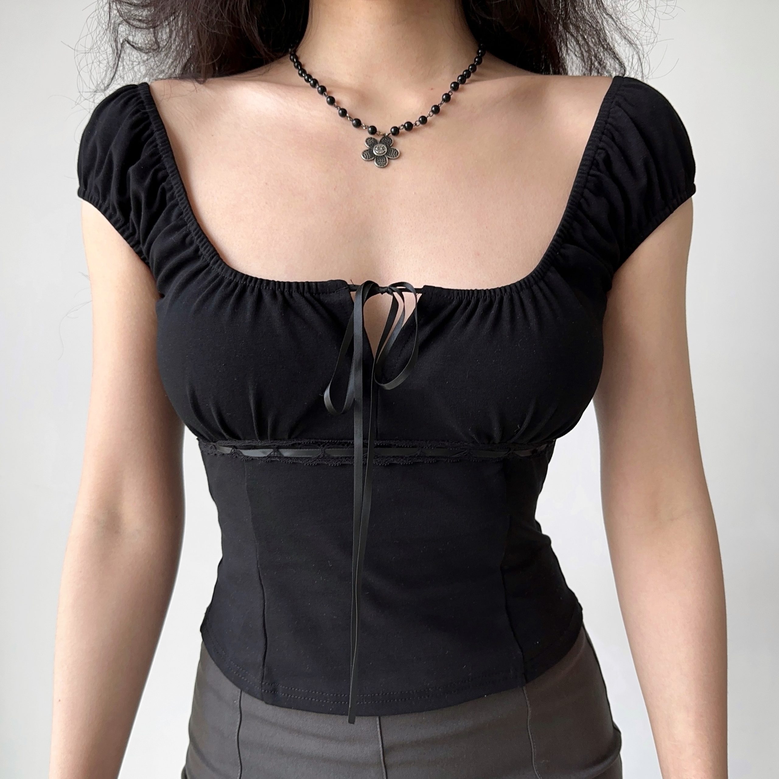 Hollow Out Lace Up Square Neck T- shirt Women Slim Fit Short Sleeve Top in, Summer High-quality product featuring prom dresses, spring outfits, business casual outfits and more. Modern design that fits the latest trends. Premium materials ensure durability and comfort. Order now for special offers! Product designed with attention to every detail. Suitable for all occasions and personal styles.