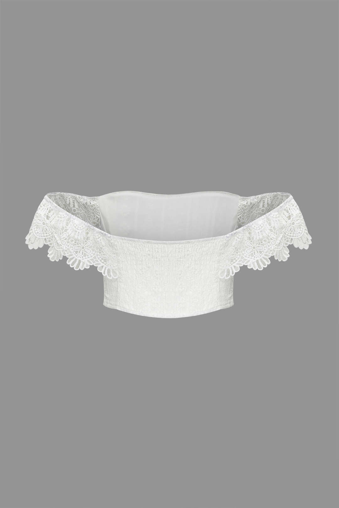 The off-shoulder design of the tube top adds a touch of flirtation, while the intricate jacquard lace detailing elevates your look, making it ideal for prom dresses, hoco dresses, or any special occasion. Pair it with platform shoes or baggy jeans for a casual yet chic vibe, or dress it up with flare jeans for a night out. This versatile set is a must-have for anyone looking to embrace the Y2K outfits trend.
