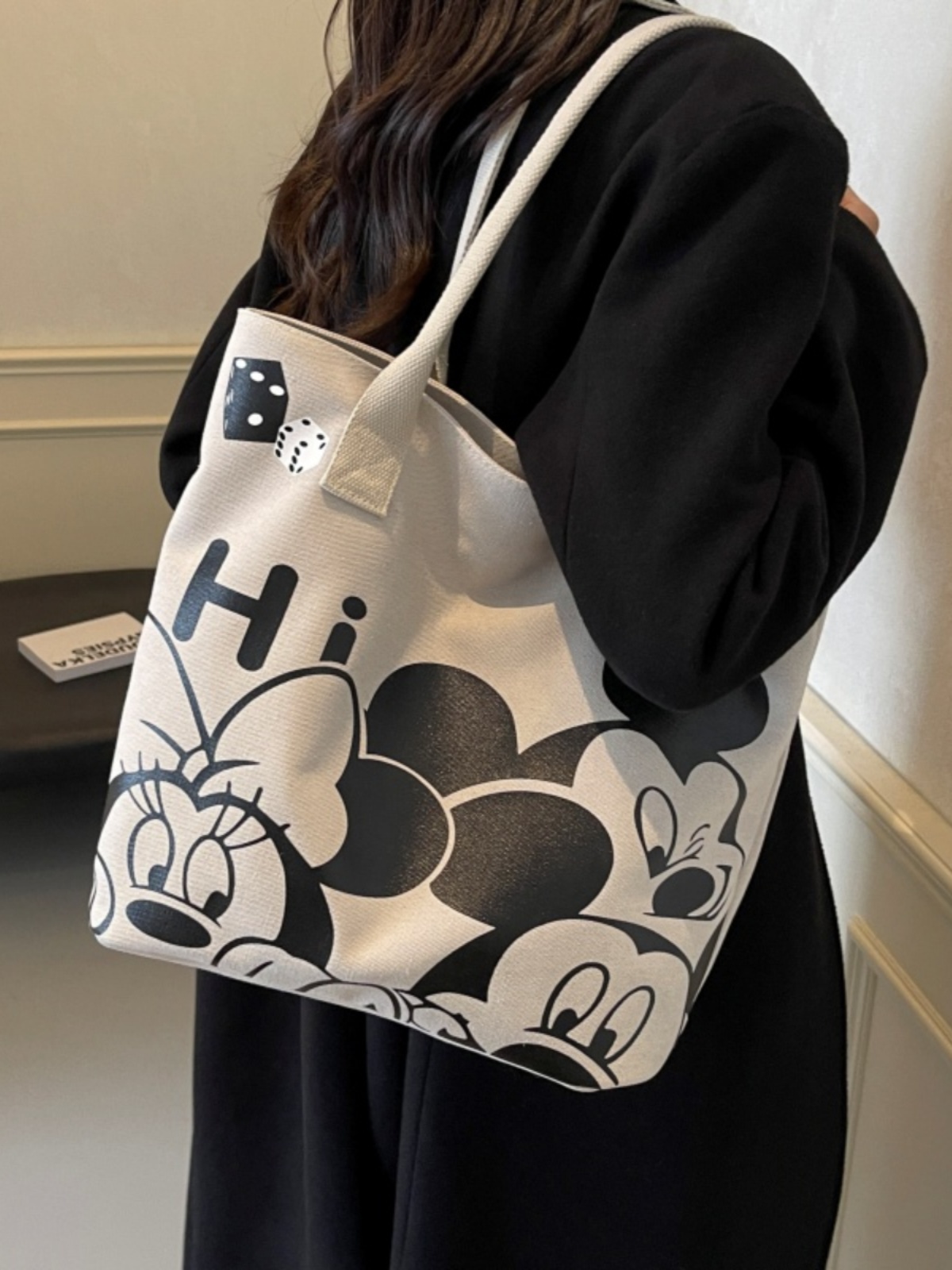 Large Capacity Cartoon Canvas Tote Bag: Stylish Outfit Ideas for Students
