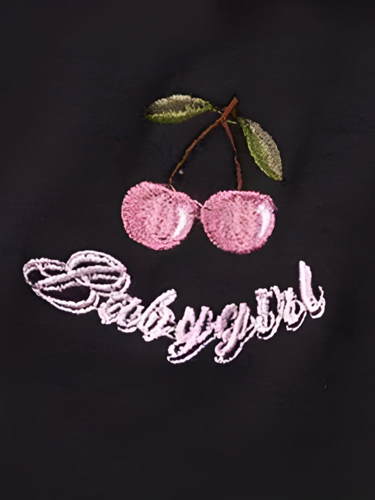 - Embroidery detail on chest: cherry, babygirl