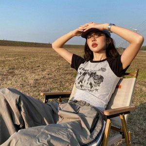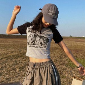 This gray crop tee displays a charming kitty graphic, coupled with an intriguing ‘Can I stroke him?’ text at the front. Made from a fusion of cotton and polyester, it ensures comfort while its short sleeves promise a breezy, laid-back feel. A whimsical choice for those wanting to express their style with a touch of humor.