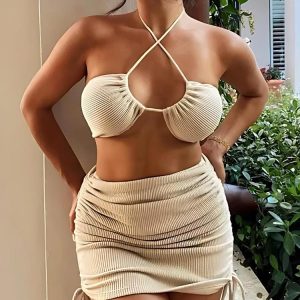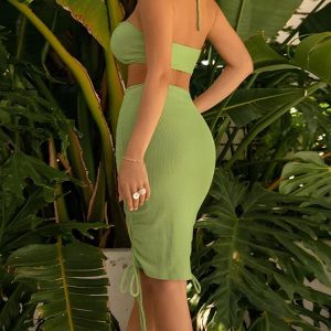 Knitted Drawstring Crop Top & Mini Skirt Two Piece Set