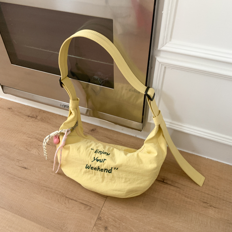 Korean Casual Dumpling Bag Letter Embroidery Saddle Bag, Shoulder Bag High-quality product featuring prom dresses, spring outfits, business casual outfits and more. Modern design that fits the latest trends. Premium materials ensure durability and comfort. Order now for special offers! Product designed with attention to every detail. Suitable for all occasions and personal styles.