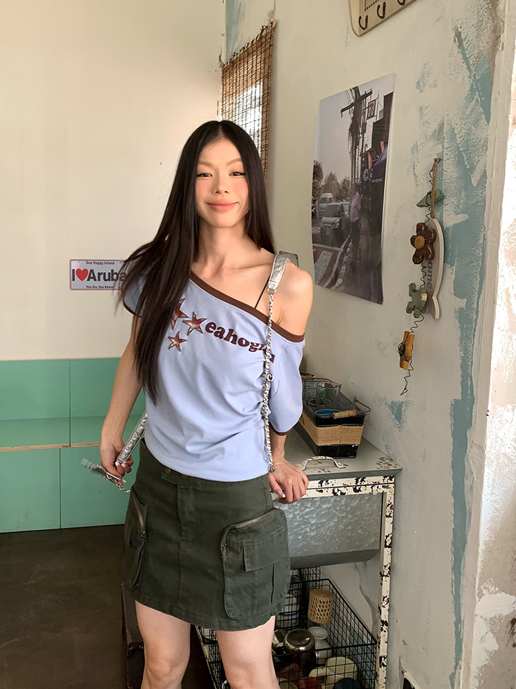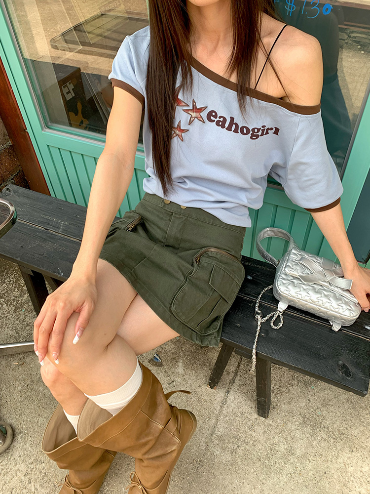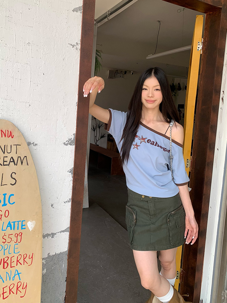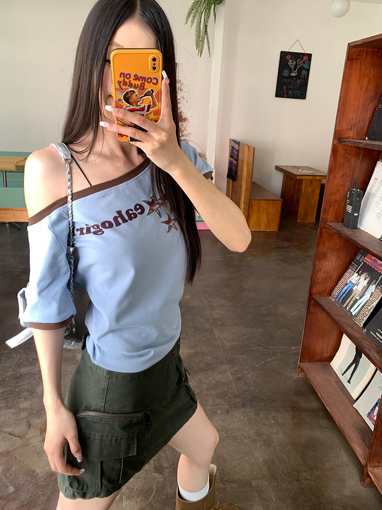 Korean Off Shoulder Letter Print Short Sleeve T- Shirt Women – Outfit Ideas