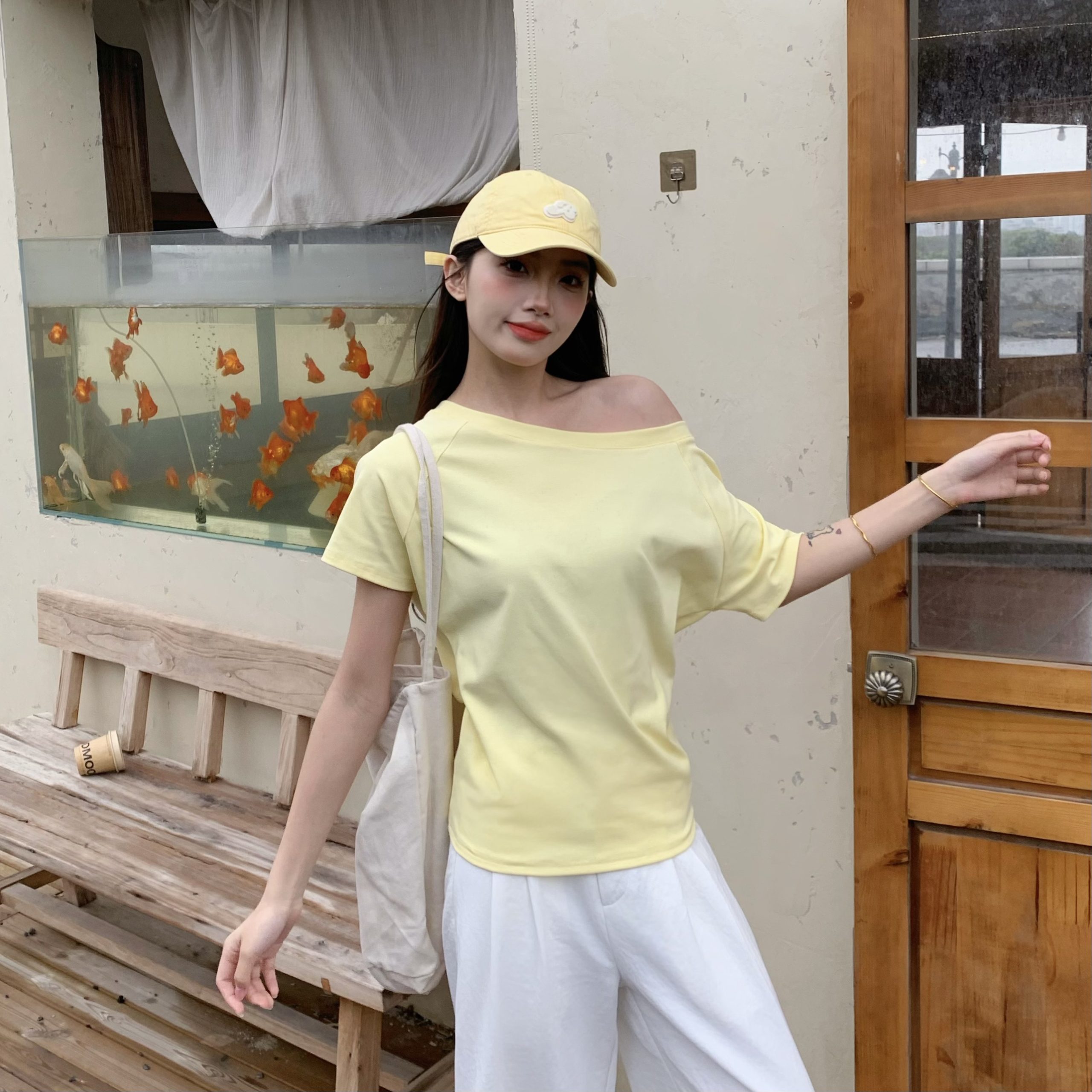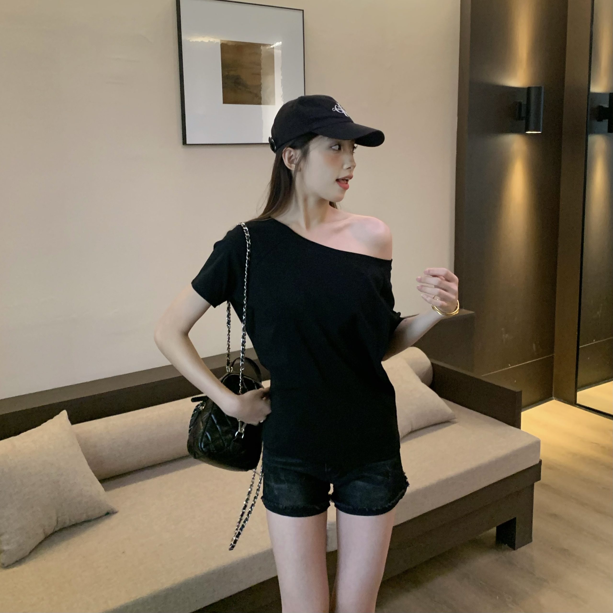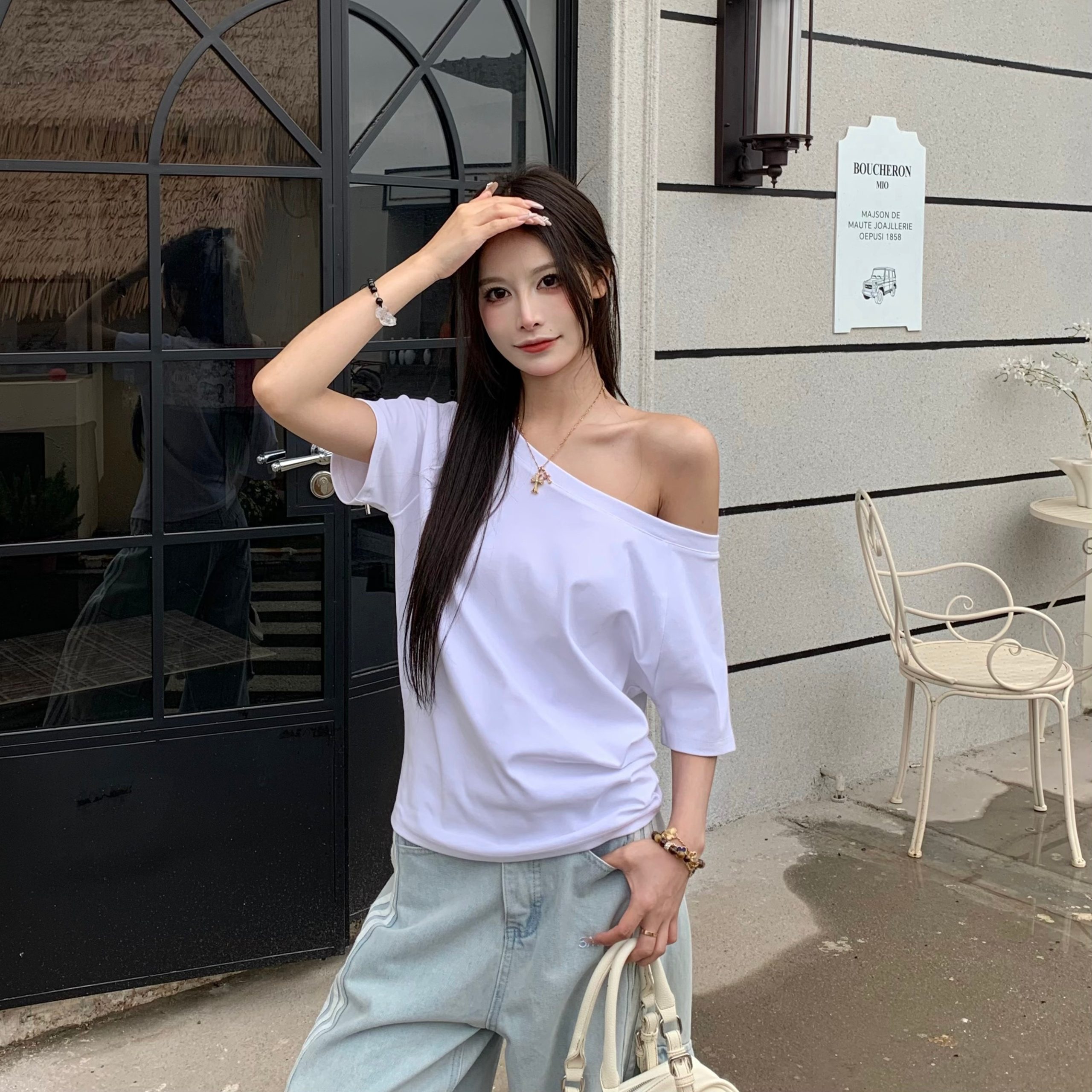 Korean One Shoulder Short Sleeve T- shirt Women Loose Fit Off Shoulder TopSolid High-quality product featuring prom dresses, spring outfits, business casual outfits and more. Modern design that fits the latest trends. Premium materials ensure durability and comfort. Order now for special offers! Product designed with attention to every detail. Suitable for all occasions and personal styles.