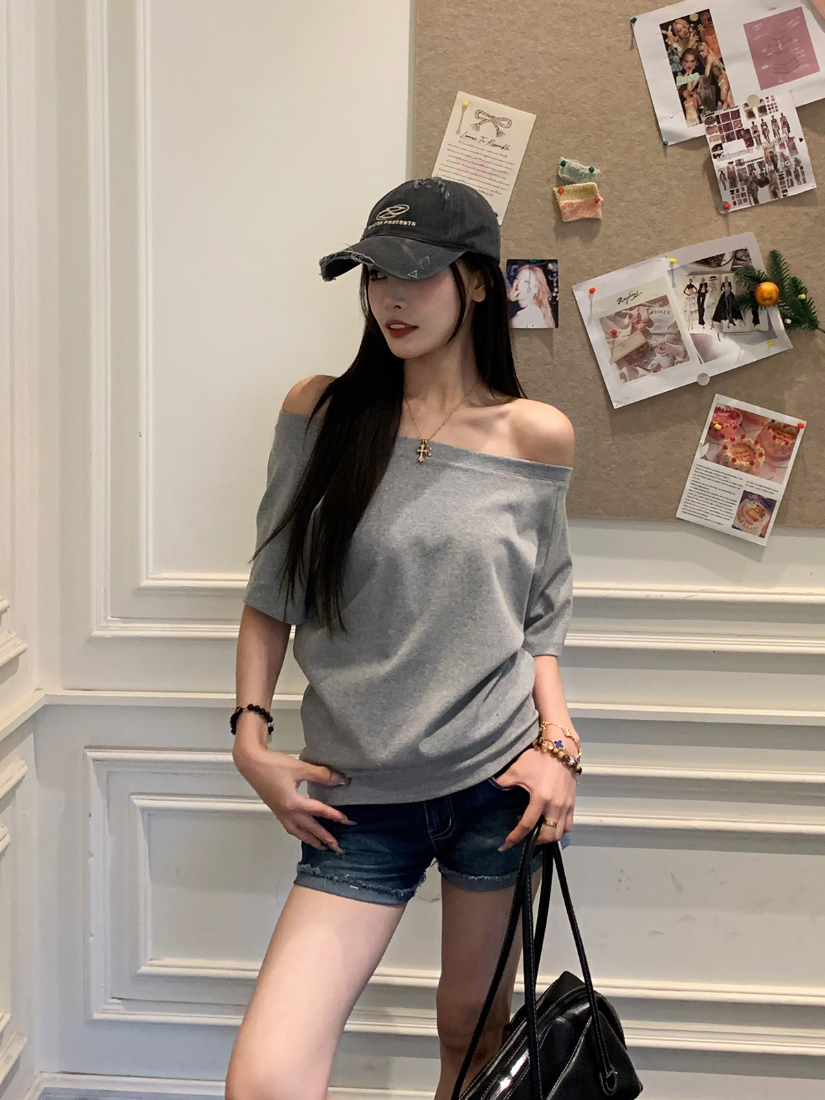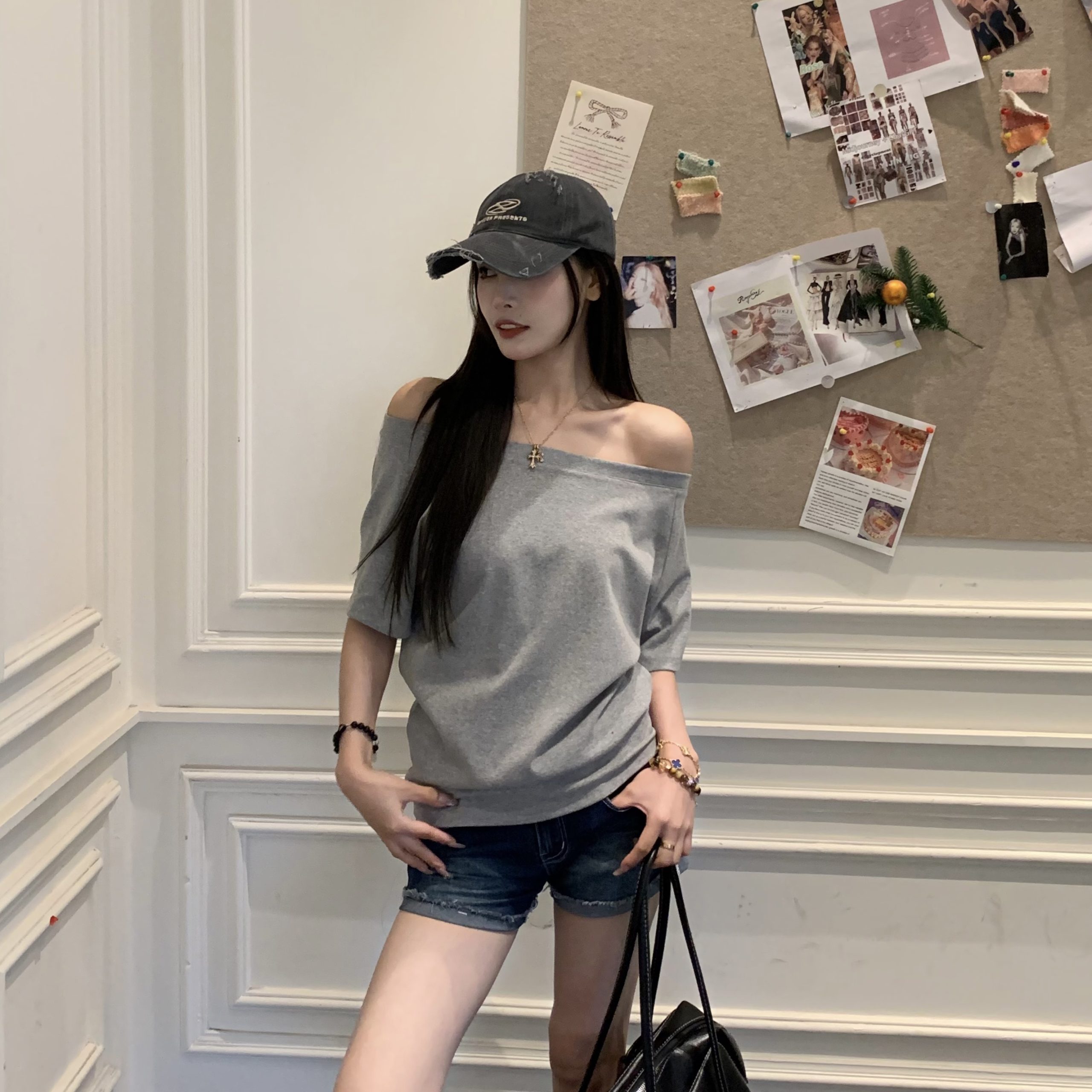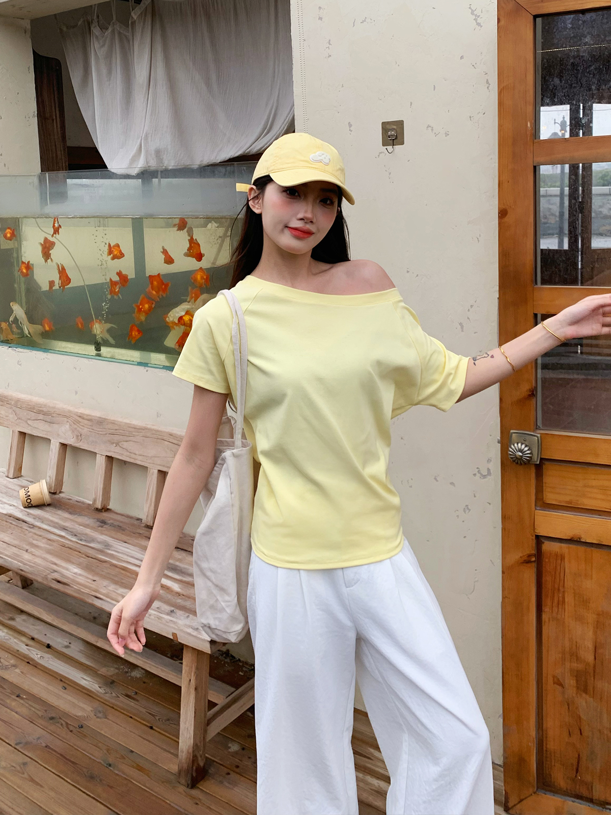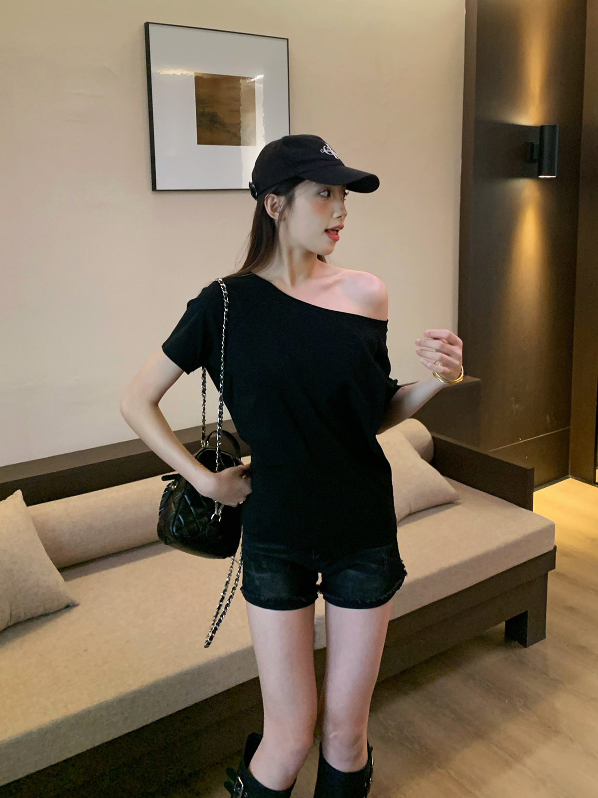 Korean One Shoulder Short Sleeve T- shirt Women Loose Fit Off Shoulder TopSolid High-quality product featuring prom dresses, spring outfits, business casual outfits and more. Modern design that fits the latest trends. Premium materials ensure durability and comfort. Order now for special offers! Product designed with attention to every detail. Suitable for all occasions and personal styles.