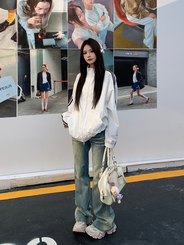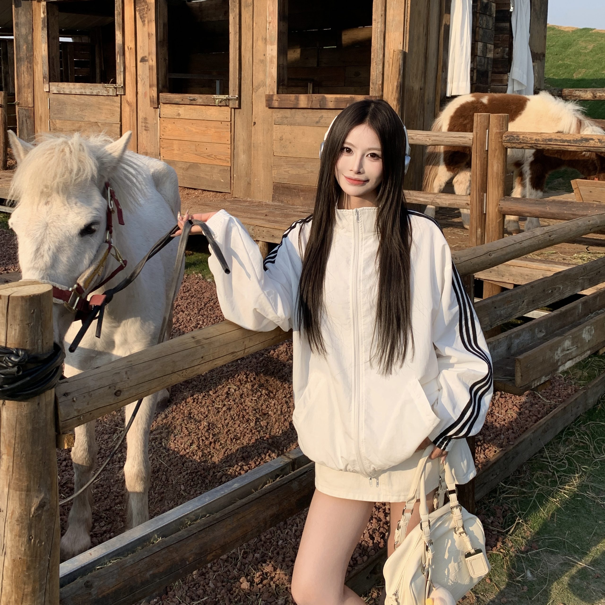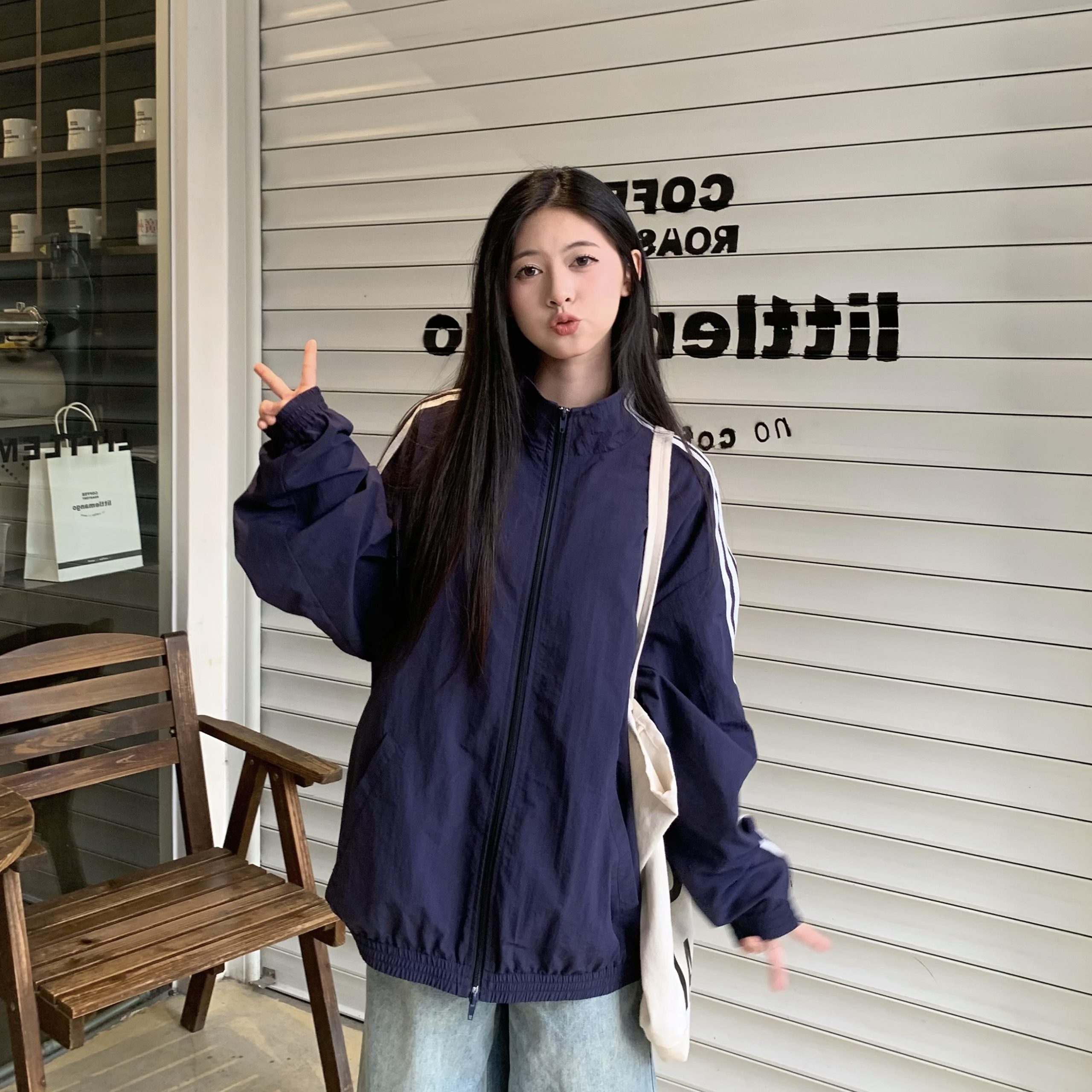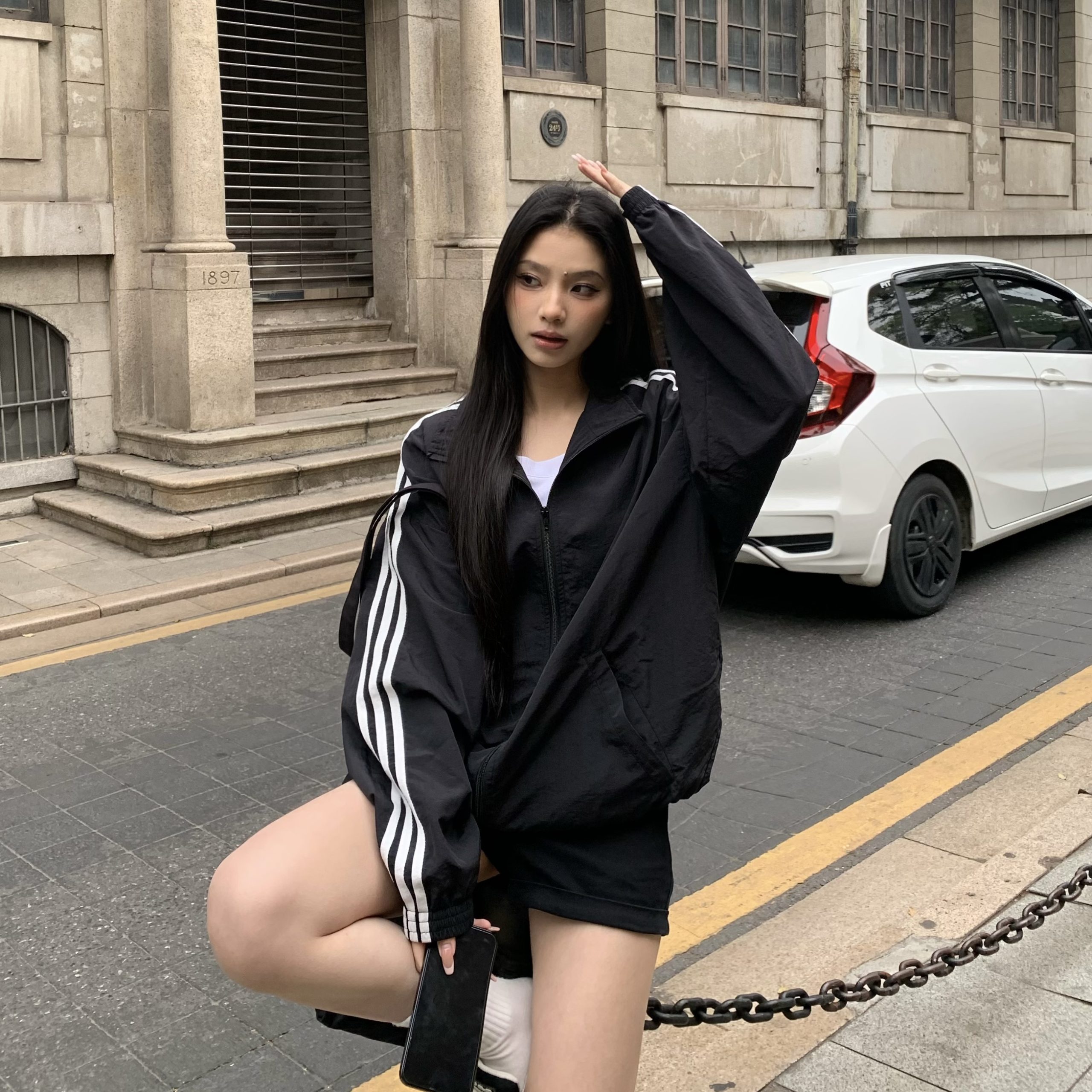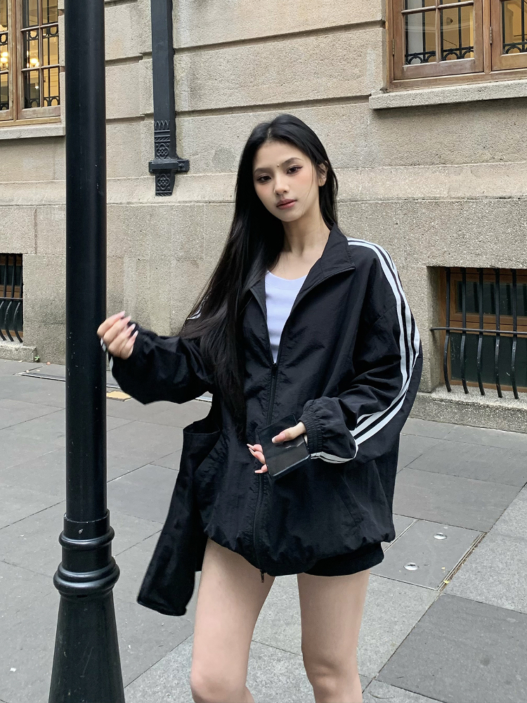 Korean Three Stripes Zipper Cardigan Jacket Women Loose Sports Casual Summer Coat Collar, Sun Protection High-quality product featuring prom dresses, spring outfits, business casual outfits and more. Modern design that fits the latest trends. Premium materials ensure durability and comfort. Order now for special offers! Product designed with attention to every detail. Suitable for all occasions and personal styles.
