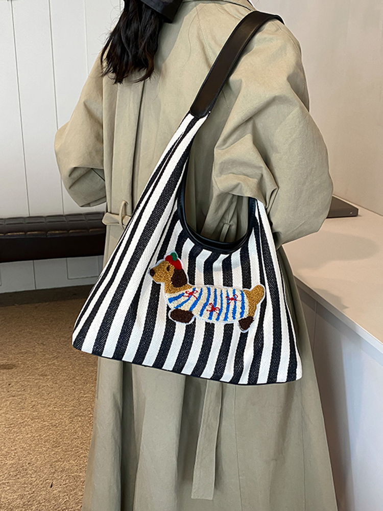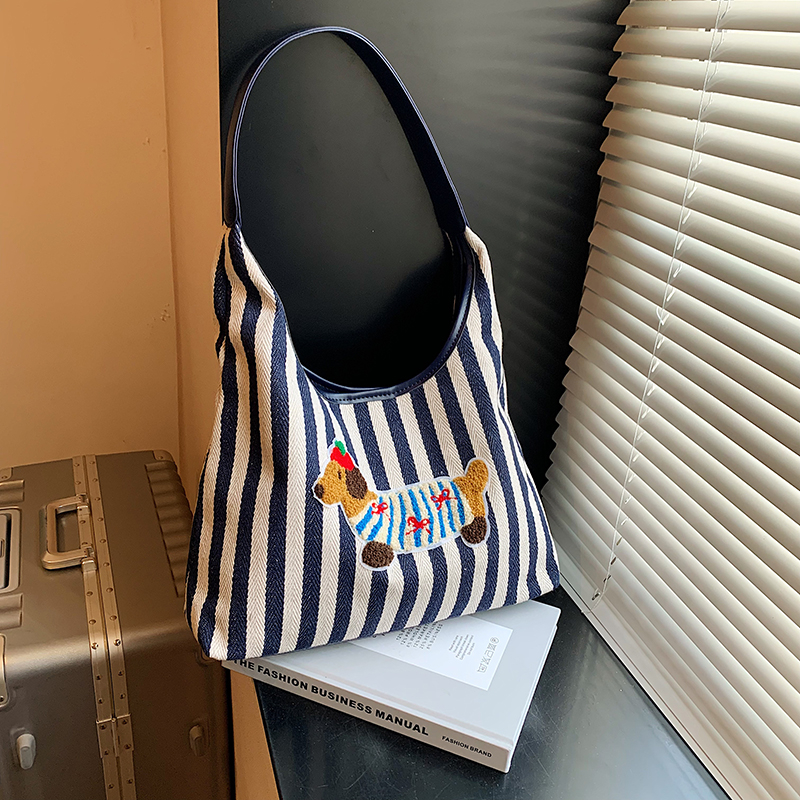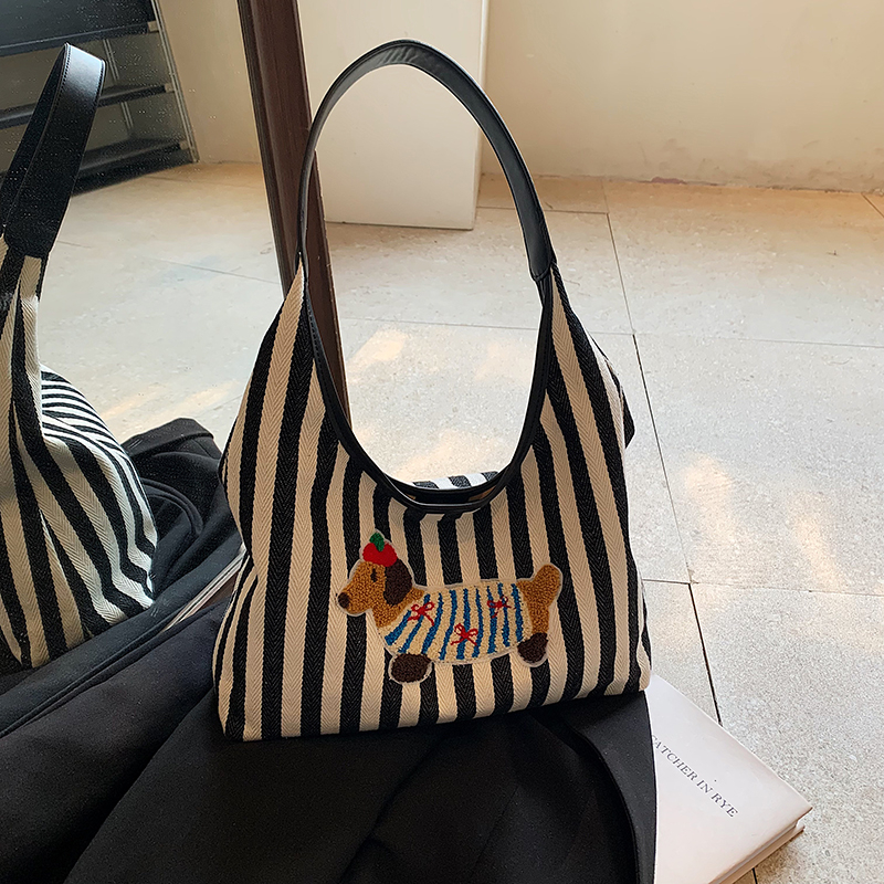 Large Capacity Striped Canvas Shopping Bag Women Shoulder to – Outfit Ideas