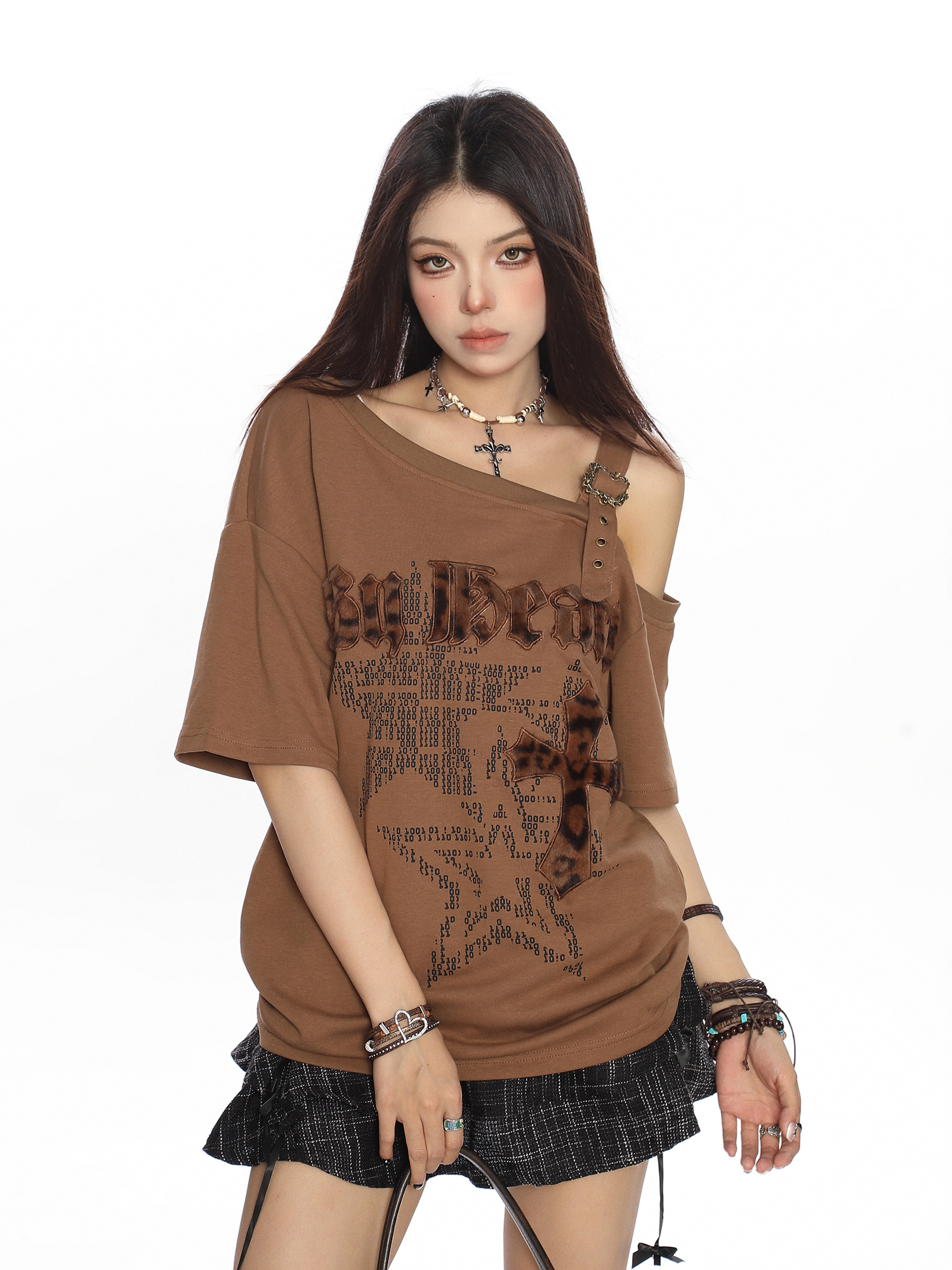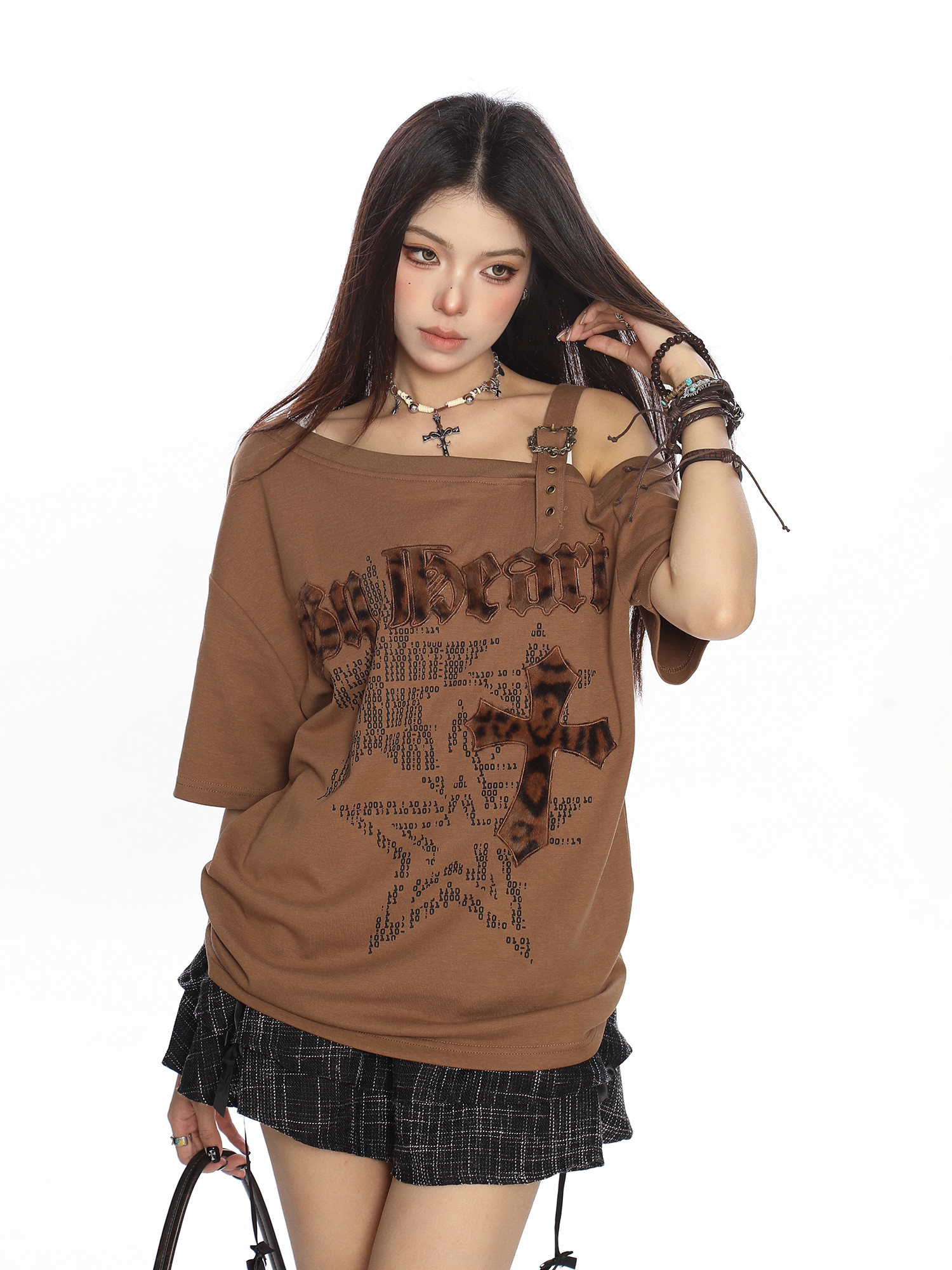 Leopard Print Off Shoulder Short Sleeve T- shirt Women Vintage Summer Loose Fit Top, Y2K High-quality product featuring prom dresses, spring outfits, business casual outfits and more. Modern design that fits the latest trends. Premium materials ensure durability and comfort. Order now for special offers! Product designed with attention to every detail. Suitable for all occasions and personal styles.