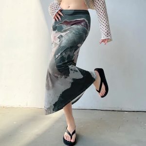 This midi skirt, embracing the fairy grunge aesthetic, features a mesmerizing graphic marble pattern. Its low rise design and elasticated waistband ensure a flattering and comfortable fit, making it a unique addition for those who adore offbeat, enchanting styles.