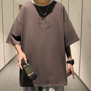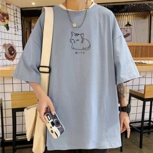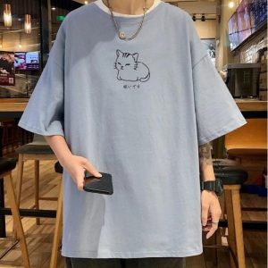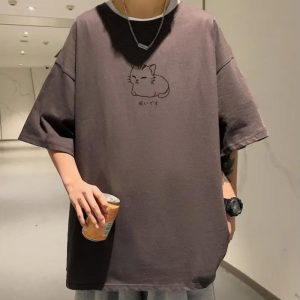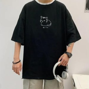 Capture a relaxed vibe with this men’s oversized tee, featuring a charming lying cat sketch at the front. The drop shoulder design adds to its laid-back appeal, while the 100% cotton fabric prioritizes comfort. It’s a unisex choice for lovers of casual chic.