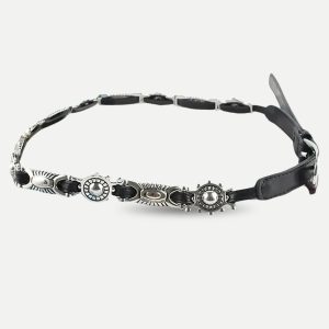 This metal faux leather tiny belt with intricate links and adjustable fit brings a subtle statement to your outfits. Great for layering over dresses or jeans, it adds edgy flair to everyday style.