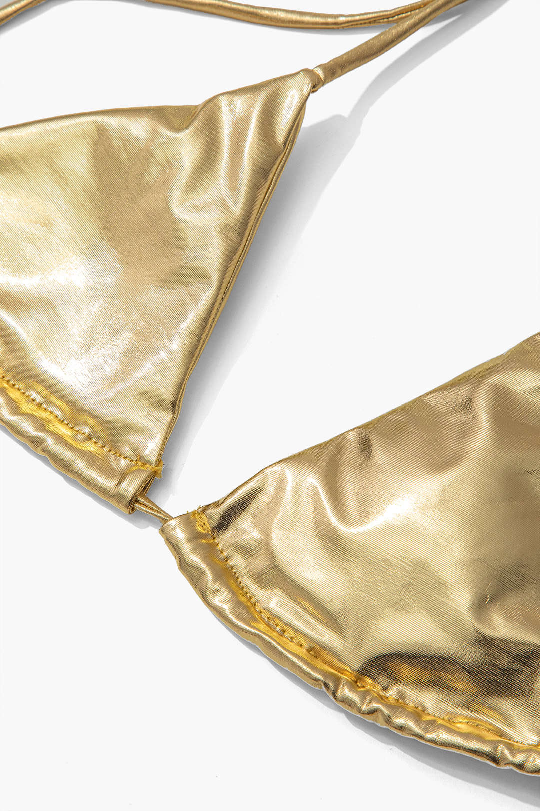 Crafted from high-quality materials, this bikini set not only offers a comfortable fit but also showcases a dazzling metallic finish that reflects the sun beautifully, making it a perfect addition to your summer outfits. Pair it with baggy jeans or a cargo skirt for a chic, laid-back look, or throw on a trucker hat for that quintessential Y2K aesthetic.