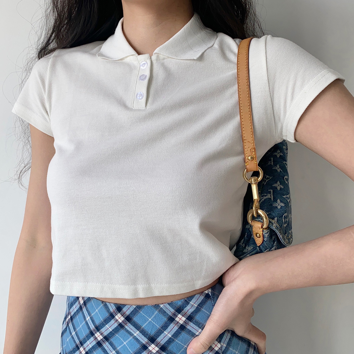 Short Sleeve Cropped T- shirt Women European, Small Lapel Pullover Top High-quality product featuring prom dresses, spring outfits, business casual outfits and more. Modern design that fits the latest trends. Premium materials ensure durability and comfort. Order now for special offers! Product designed with attention to every detail. Suitable for all occasions and personal styles.
