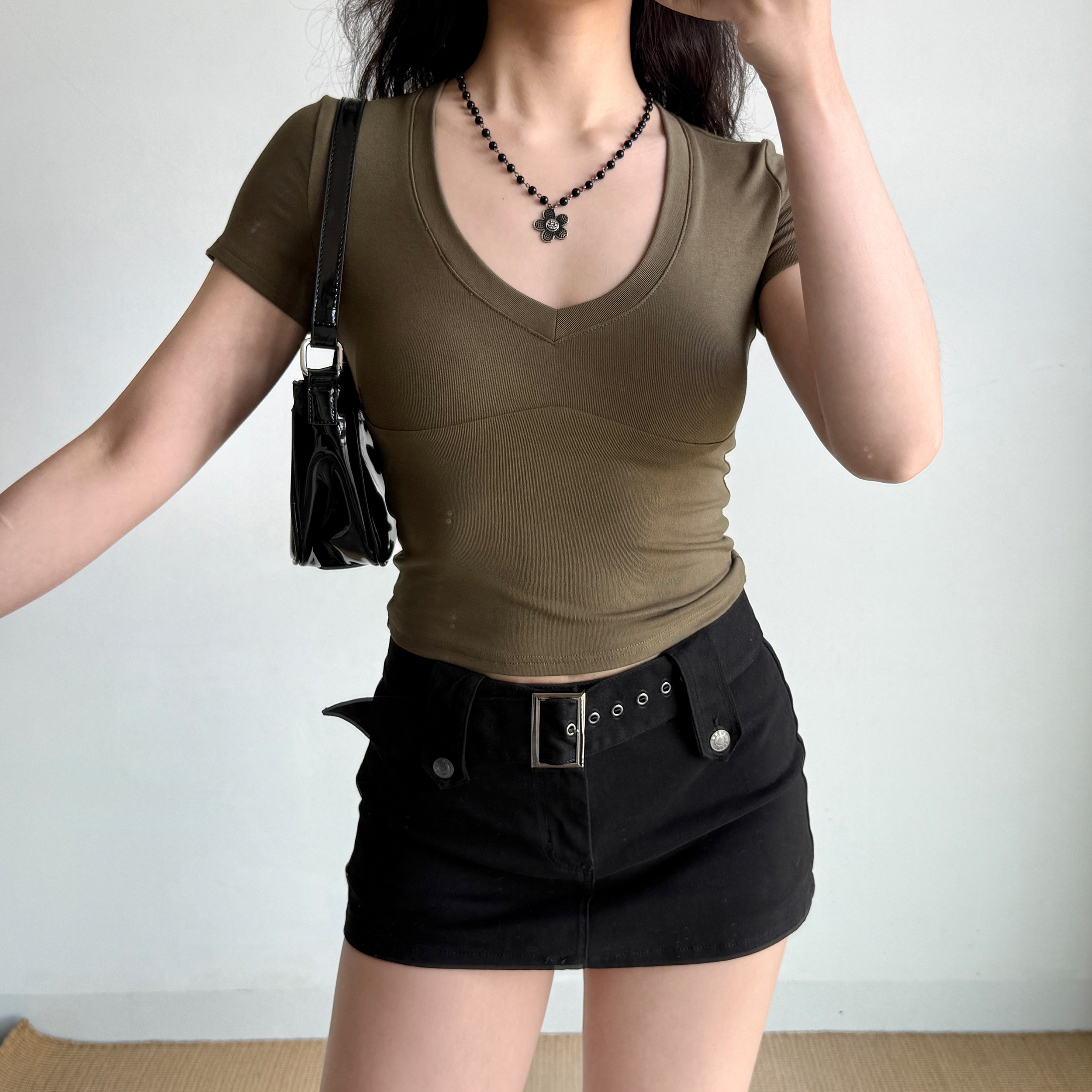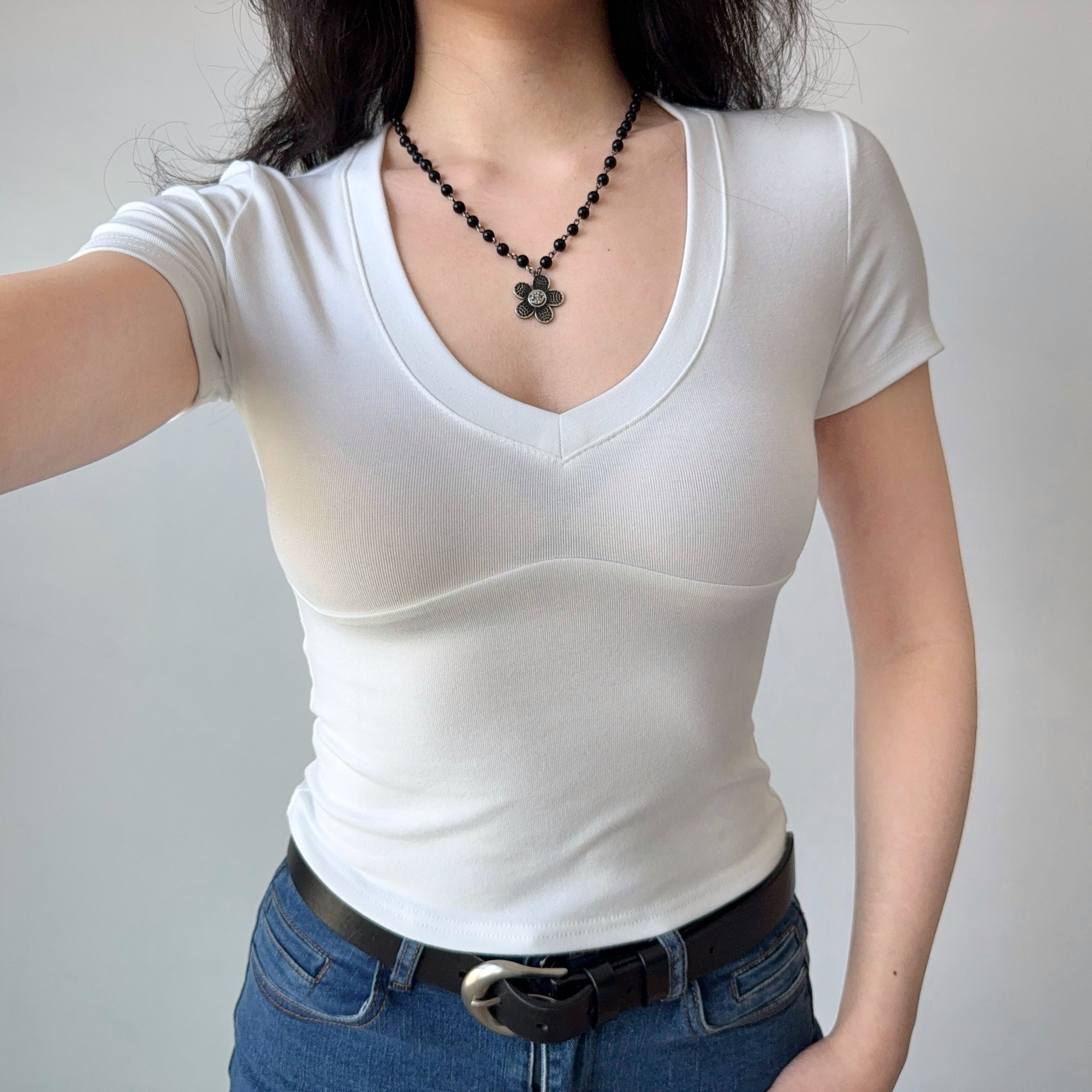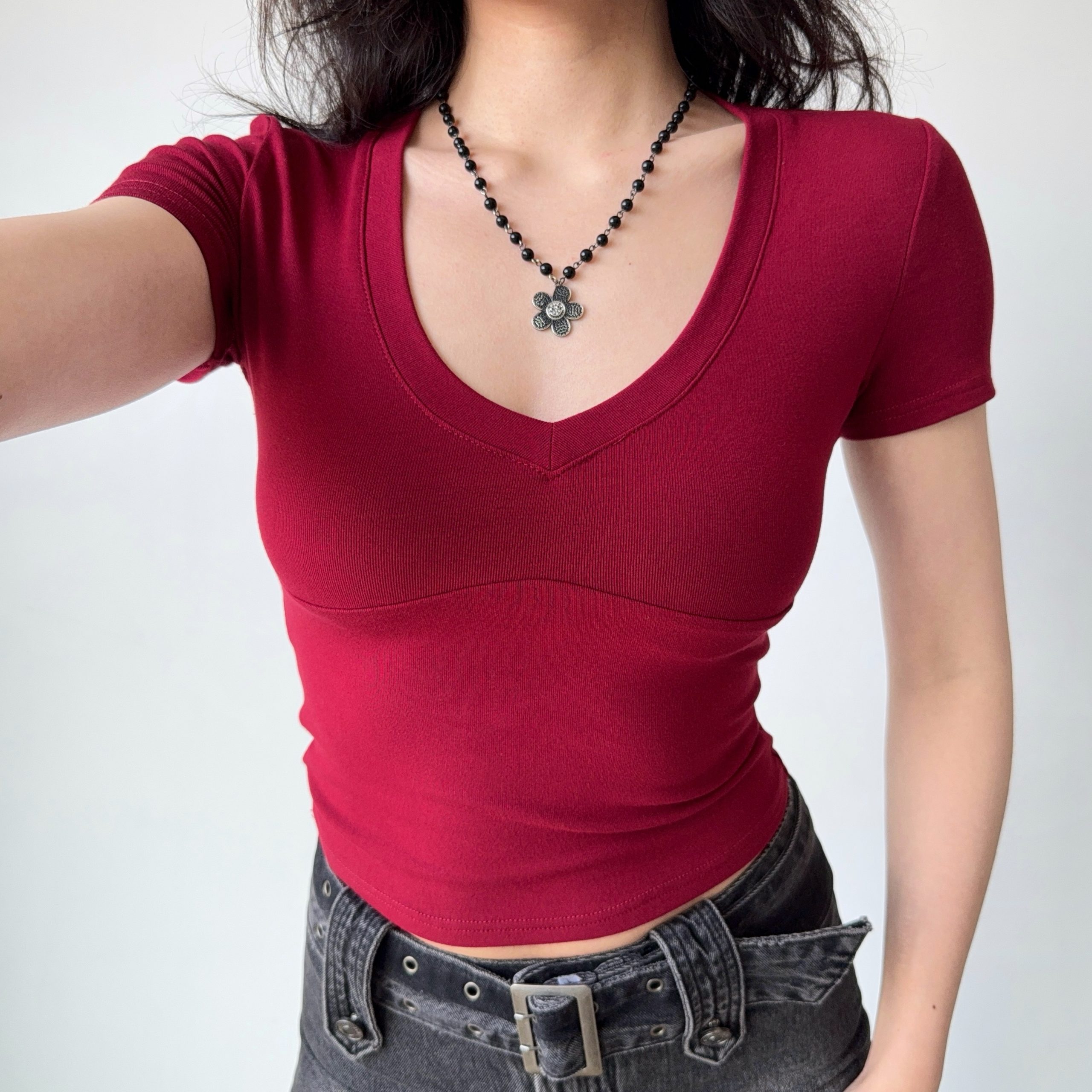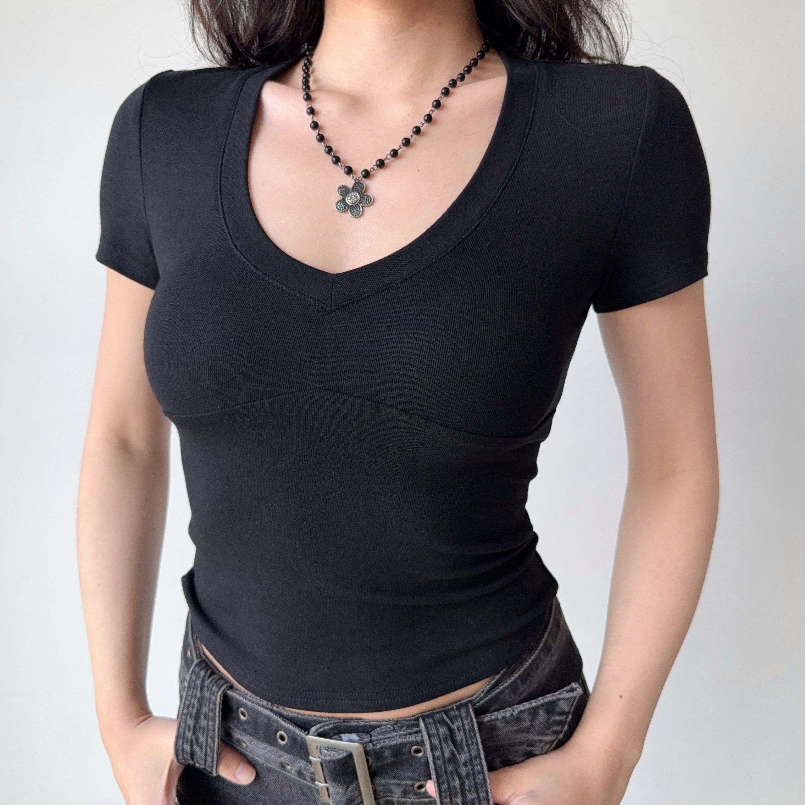 Solid V- Neck Short Sleeve T- shirt Women Summer Slim Fit Top, Casual High-quality product featuring prom dresses, spring outfits, business casual outfits and more. Modern design that fits the latest trends. Premium materials ensure durability and comfort. Order now for special offers! Product designed with attention to every detail. Suitable for all occasions and personal styles.