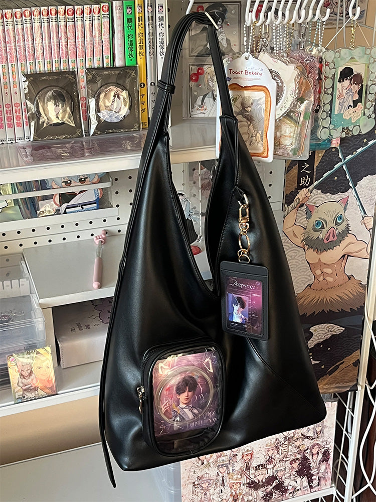 A sleek minimalist triangle ita bag designed for daily commuting, school, or work. Spacious enough to fit an 11-inch iPad, with a clear display pocket that can hold plush dolls up to 15cm (5.9in). Lightweight yet practical for everyday carry.