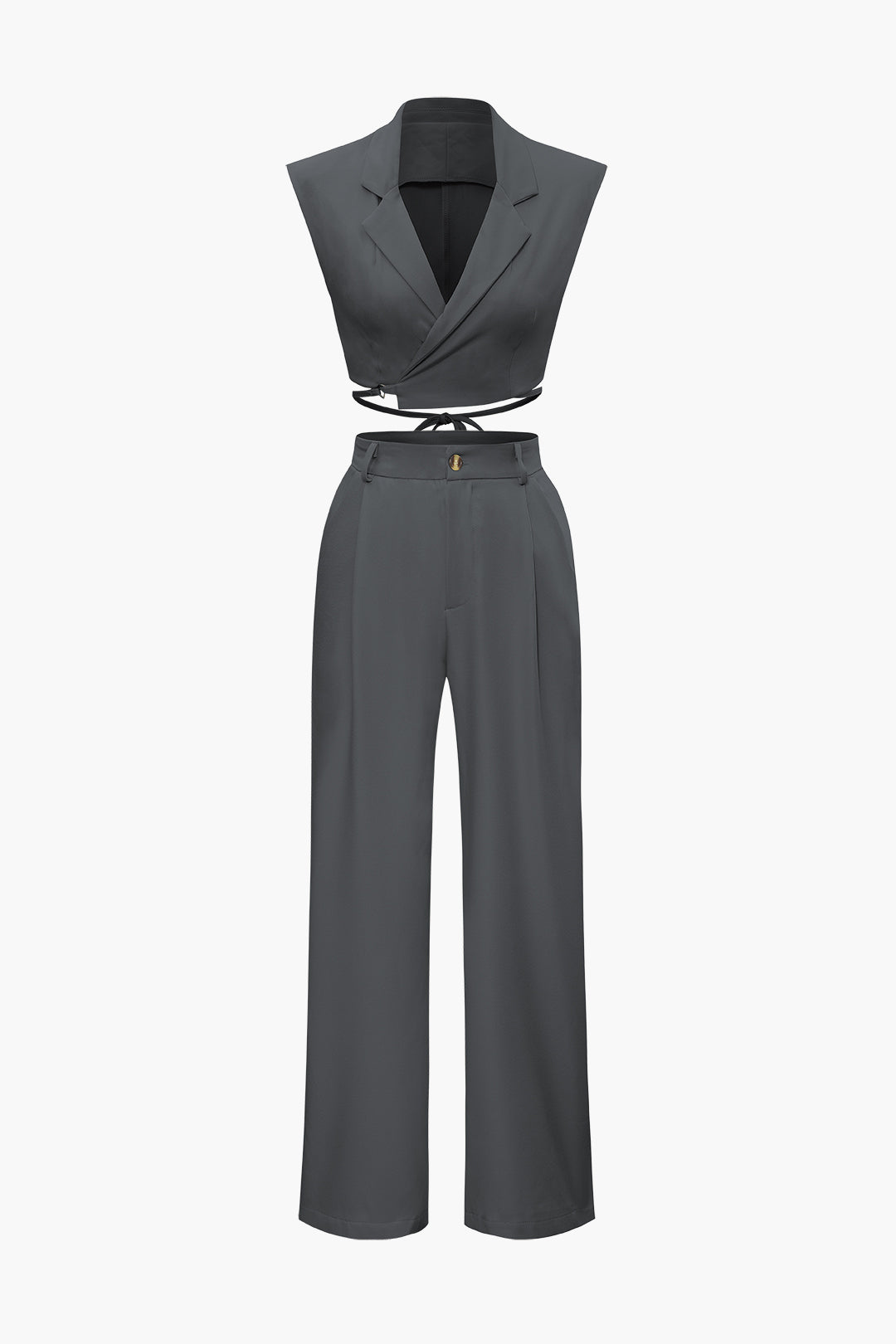 Notched Lapel Tie Back V Straight Leg Suit Pants Set Y2K High-quality product featuring prom dresses, spring outfits, business casual outfits and more. Modern design that fits the latest trends. Premium materials ensure durability and comfort. Order now for special offers! Product designed with attention to every detail. Suitable for all occasions and personal styles.