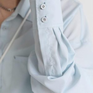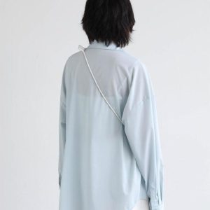 This light blue poplin shirt is a cool, oversized triumph in fashion. Crafted from durable polyester, it features a timeless collar, smart button fastening, and a practical chest pocket. Perfect for the minimalist trendsetter, a must-have addition to your wardrobe.