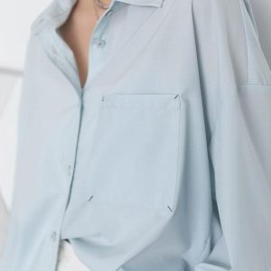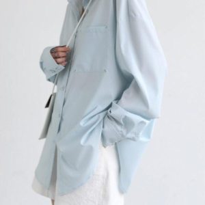 This light blue poplin shirt is a cool, oversized triumph in fashion. Crafted from durable polyester, it features a timeless collar, smart button fastening, and a practical chest pocket. Perfect for the minimalist trendsetter, a must-have addition to your wardrobe.
