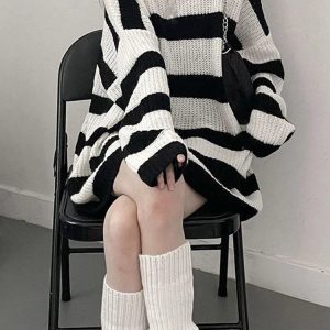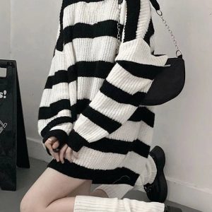Oversized Striped Knit Sweater offers a relaxed silhouette with bold horizontal stripes and a soft knit texture. Designed with dropped shoulders and an oversized cut, this sweater provides easy layering and everyday comfort. The ribbed cuffs and hem keep the shape balanced, making it suitable for casual outfits with boots, skirts, or relaxed denim.