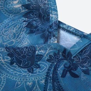Show off boho style with this paisley mesh crop top. The sheer design and ruffle details keep it playful, while spaghetti straps and a low neckline spice up summer or festival looks.