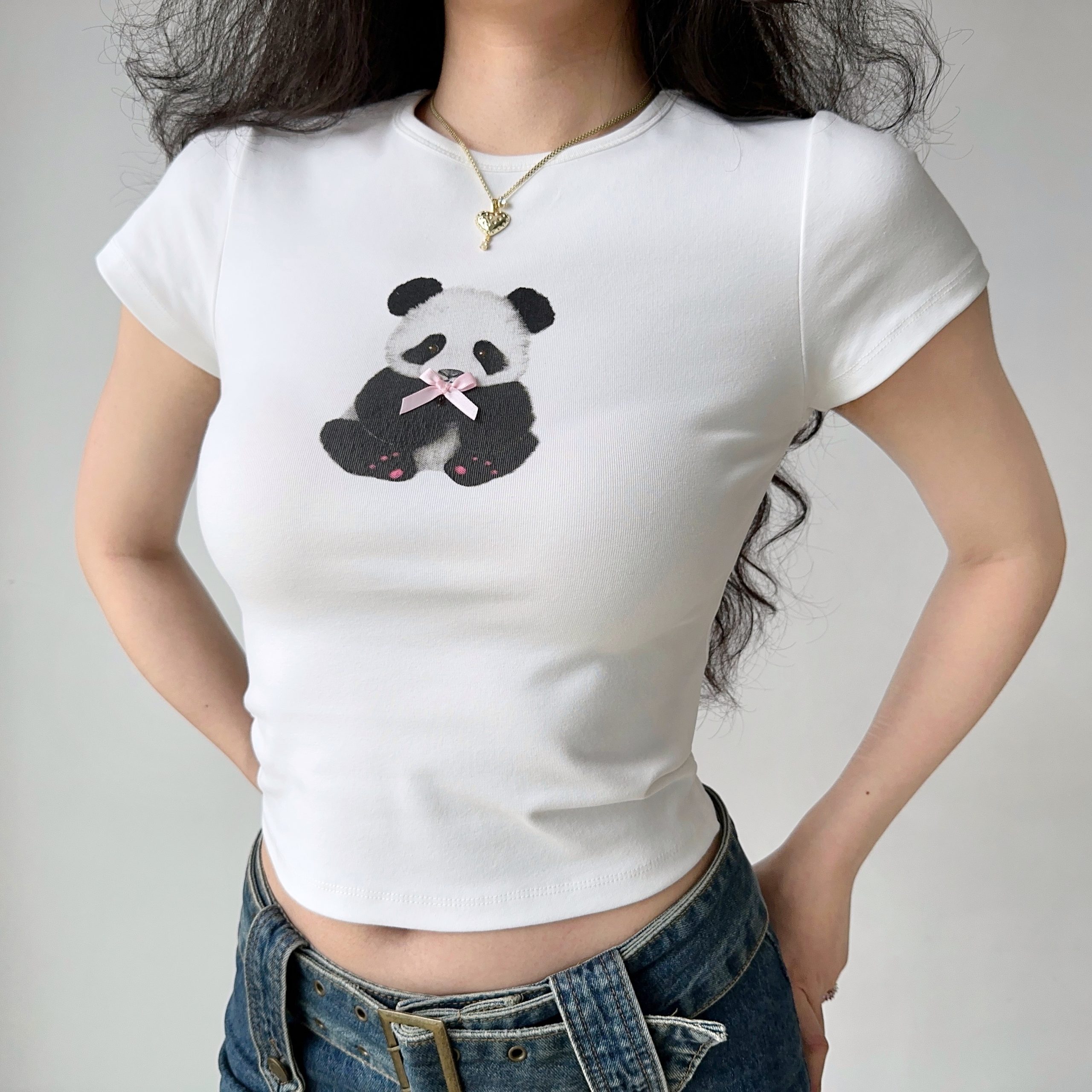 Embrace playful elegance with our Panda Print Summer T-Shirt for Women, designed in a chic European American style. This slim fit, round neck top features a delightful panda graphic that adds a touch of whimsy to your summer wardrobe, while the short sleeves keep you cool and comfortable. Perfect for casual outings or lounging at home, it’s a versatile addition that you won’t want to miss. Add to your cart today and elevate your style with this adorable tee!