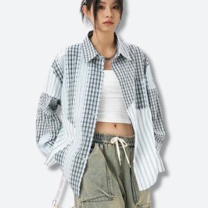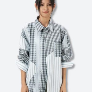 The Patchwork Striped & Plaid Shirt mixes classic patterns with a modern twist. Lightweight and loose-fitting, it’s perfect for layering or wearing solo, adding an edgy touch to your streetwear look.