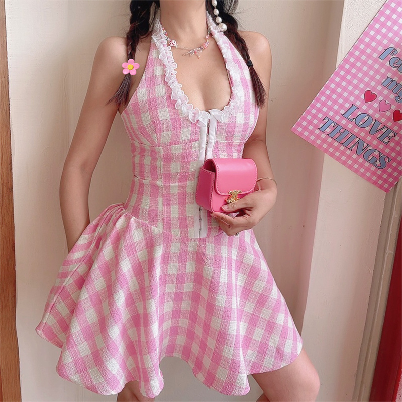 Peach Pink Off Shoulder Lace Neckline Chunky Tweed Checkered – Outfit Ideas