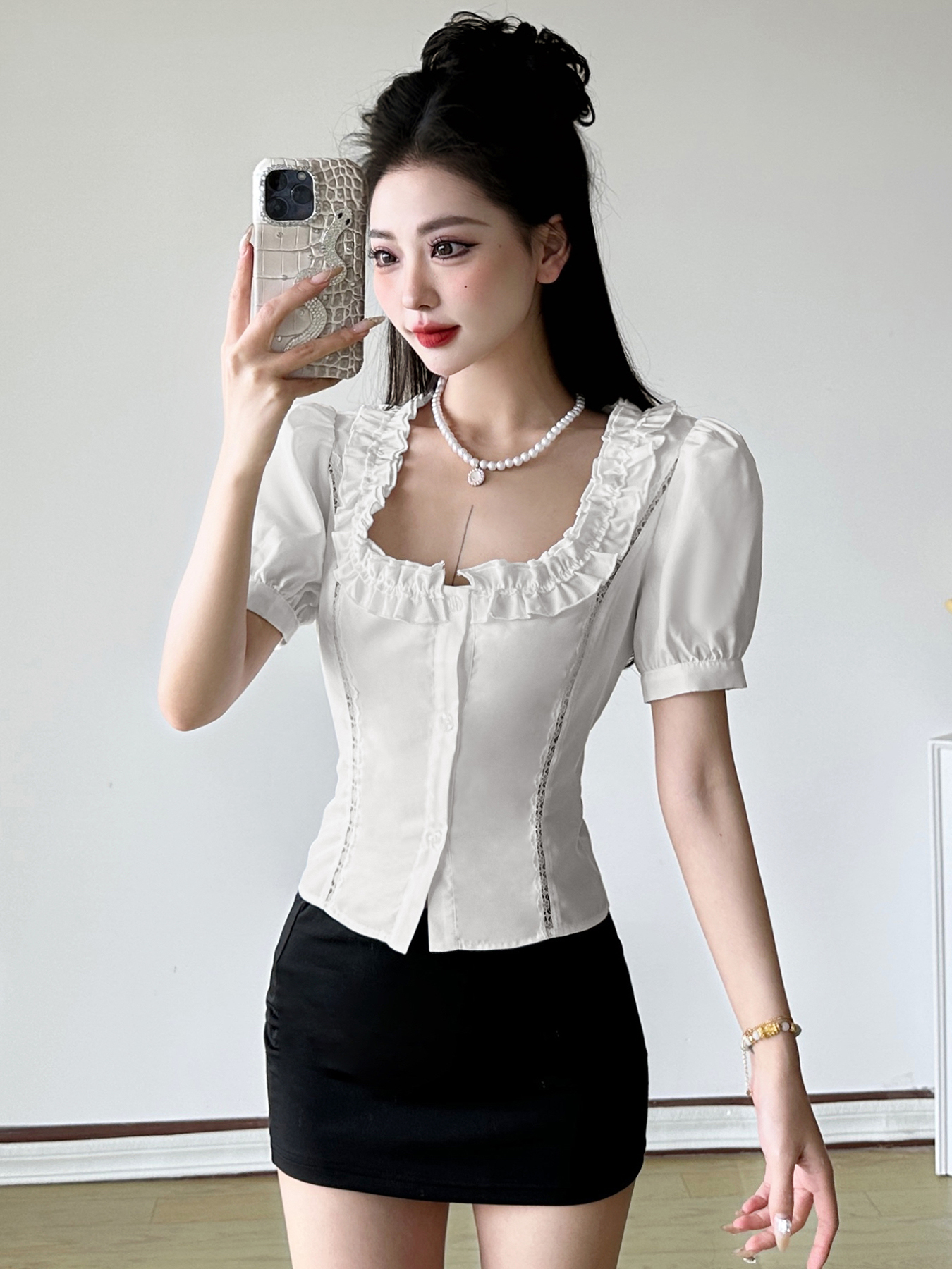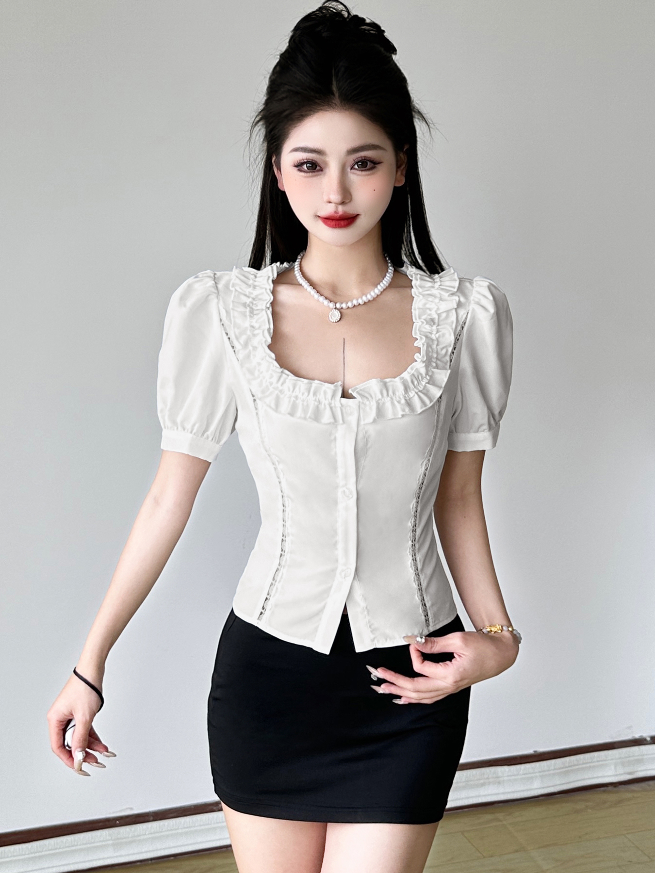Puff Sleeve White Button Up Blo Women Square Collar, WaiTie Elegan High-quality product featuring prom dresses, spring outfits, business casual outfits and more. Modern design that fits the latest trends. Premium materials ensure durability and comfort. Order now for special offers! Product designed with attention to every detail. Suitable for all occasions and personal styles.