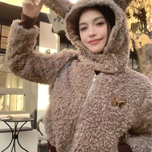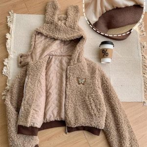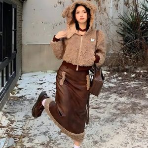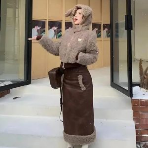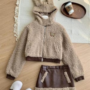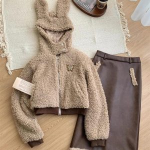 This adorable two-piece set includes a hoodie with a rabbit ear hood design, zip fastening, front pockets, and butterfly embroidery, paired with a faux leather skirt featuring faux fur details and belt loops. Made from soft touch material, it’s a cozy, comfy, and cute set perfect for casual wear.