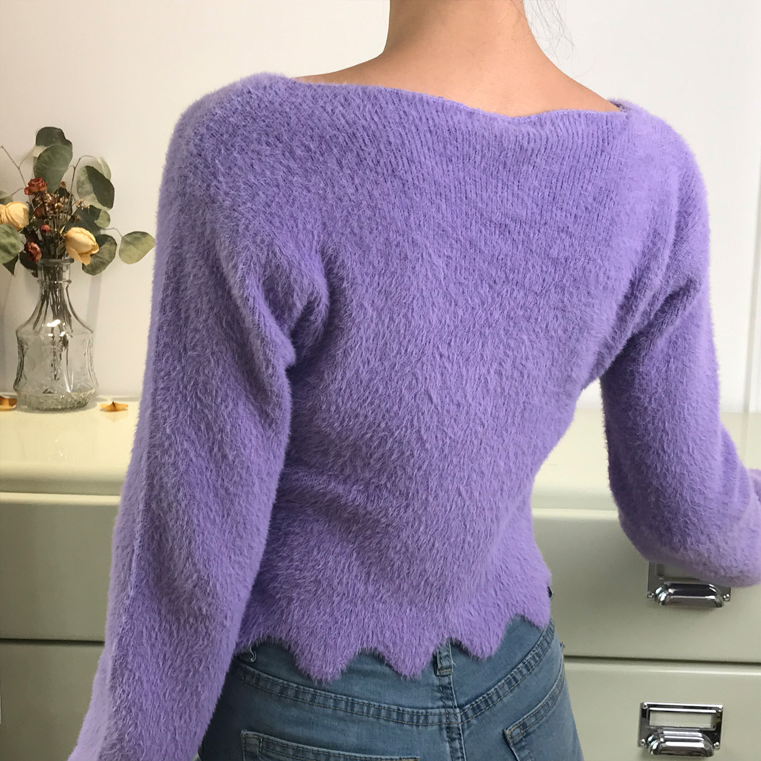 Embrace your Y2K style with our Retro Cute Girl V-Neck Ruffled Hem Fluffy High-Waisted Long Sleeve Knitted Cardigan Top. This charming cardigan features a flattering V-neckline and a playful ruffled hem that adds a touch of whimsy to any outfit. Crafted for comfort and style, its fluffy knit fabric offers a cozy fit perfect for layering or wearing solo. Don’t miss out on this must-have piece to elevate your wardrobe—add it to your cart today!