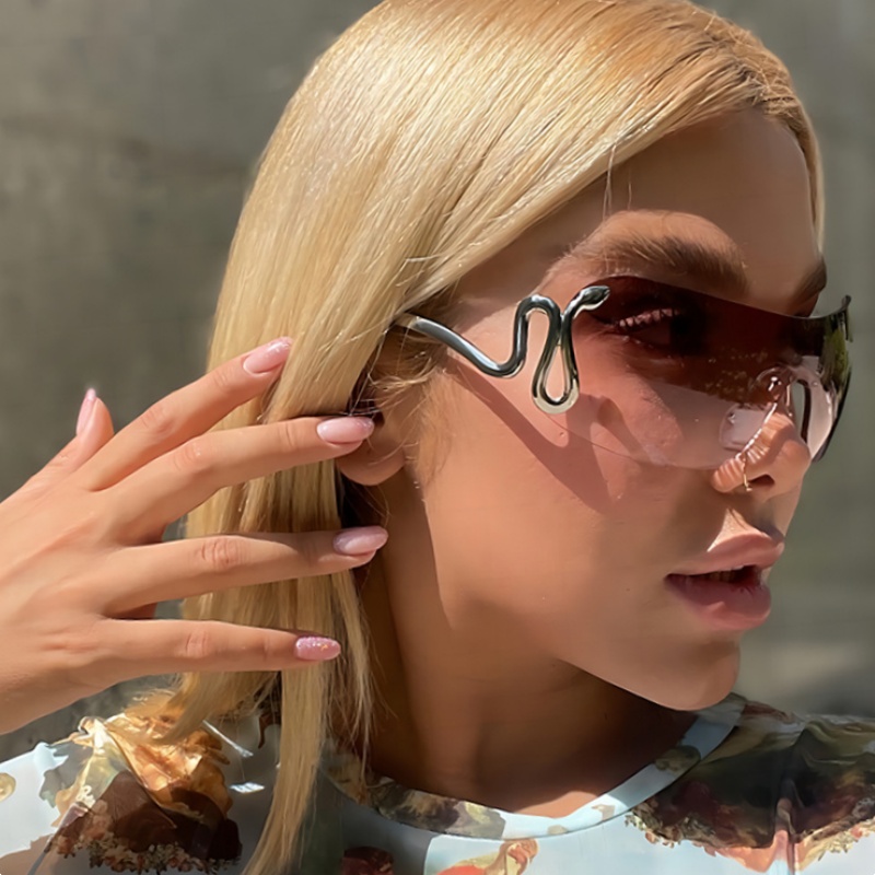 Retro Cyberpunk Frameless Large Frame Sunglasses Women Snake Shaped Cut Edge, Faces High-quality product featuring prom dresses, spring outfits, business casual outfits and more. Modern design that fits the latest trends. Premium materials ensure durability and comfort. Order now for special offers! Product designed with attention to every detail. Suitable for all occasions and personal styles.