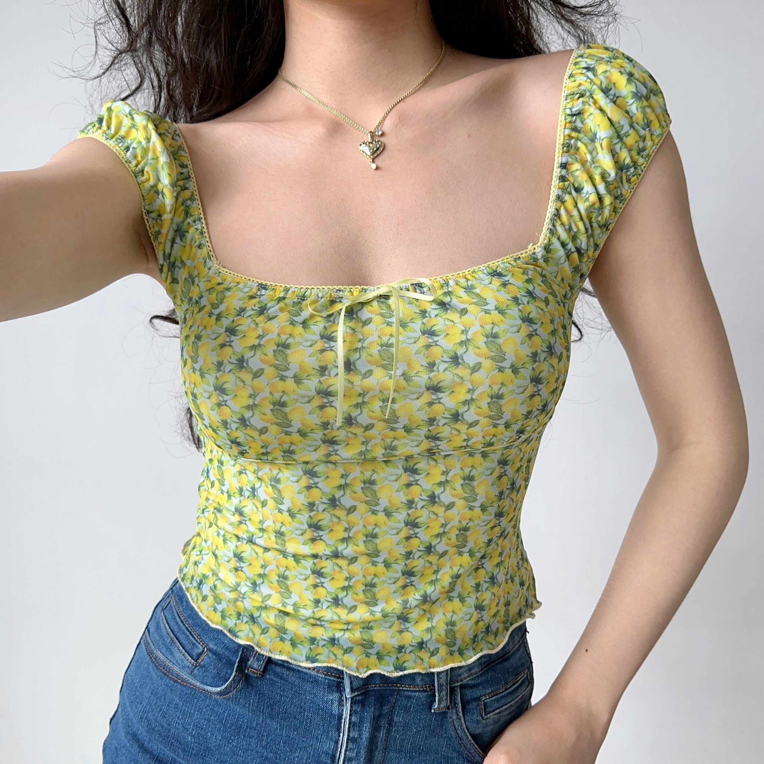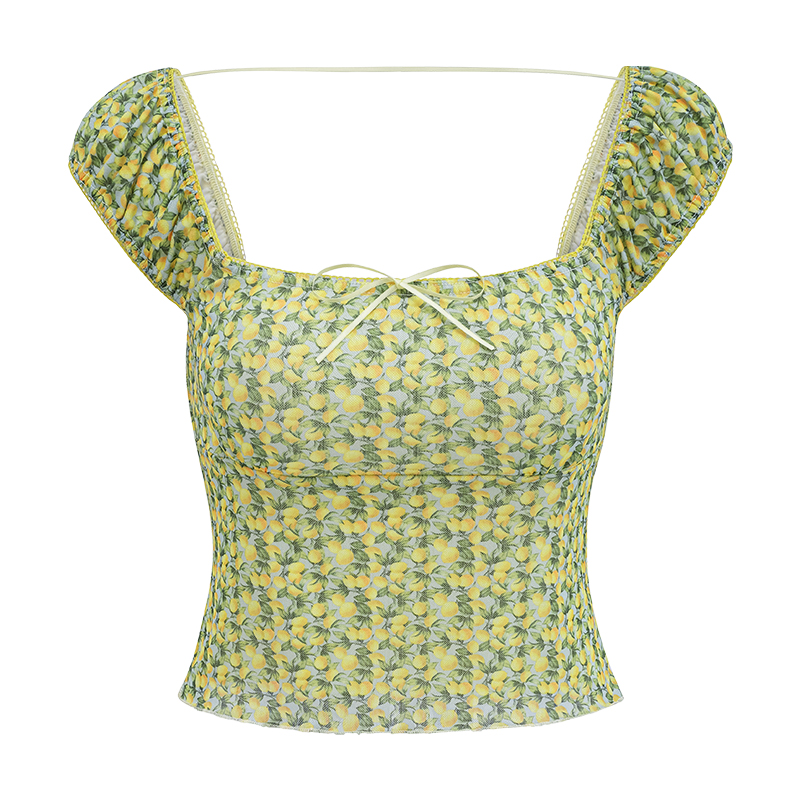 Retro Fruit Print Square Neck Short Crop Women Summer Slim Fit Puff Sleeve TopEuropean High-quality product featuring prom dresses, spring outfits, business casual outfits and more. Modern design that fits the latest trends. Premium materials ensure durability and comfort. Order now for special offers! Product designed with attention to every detail. Suitable for all occasions and personal styles.