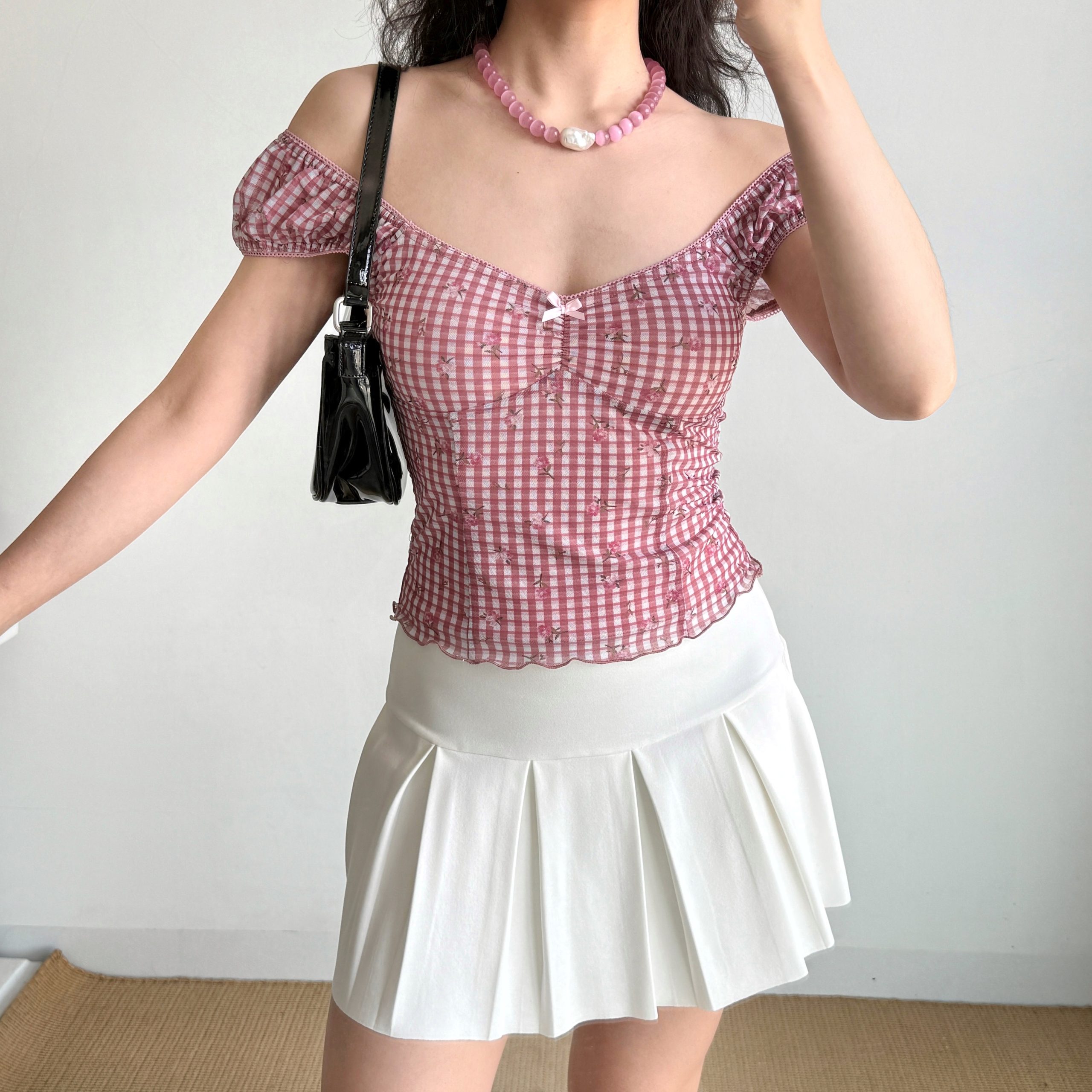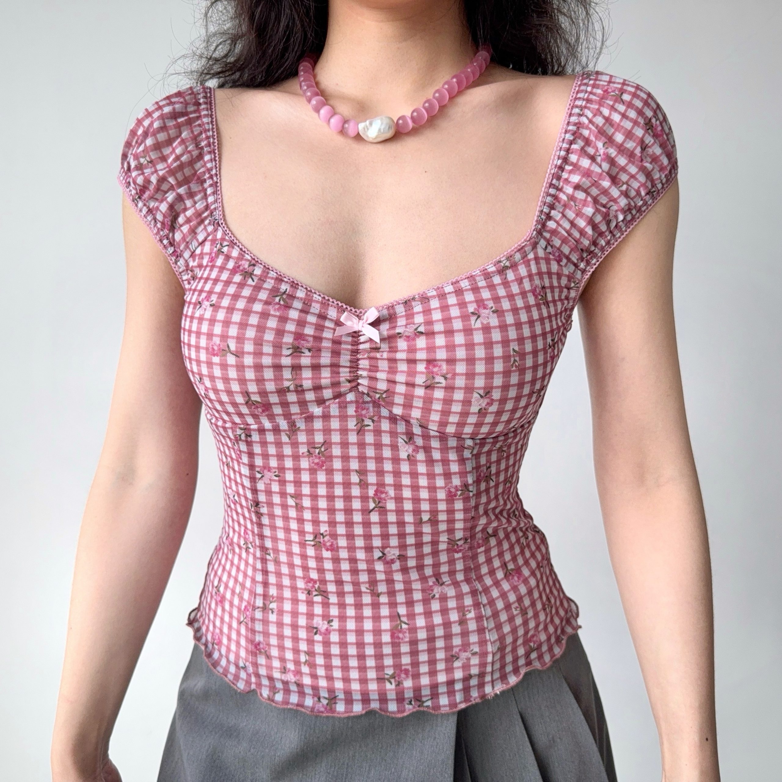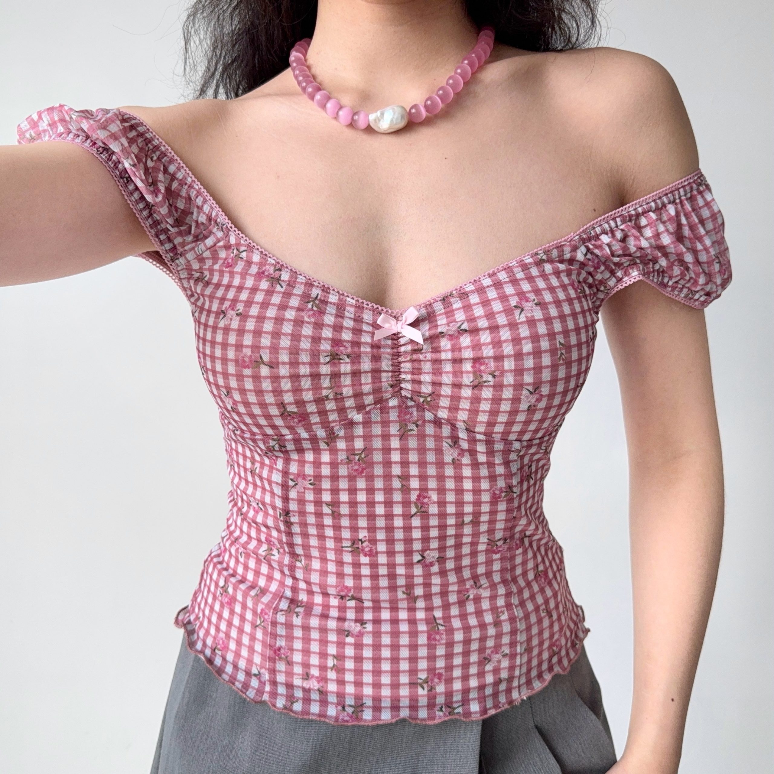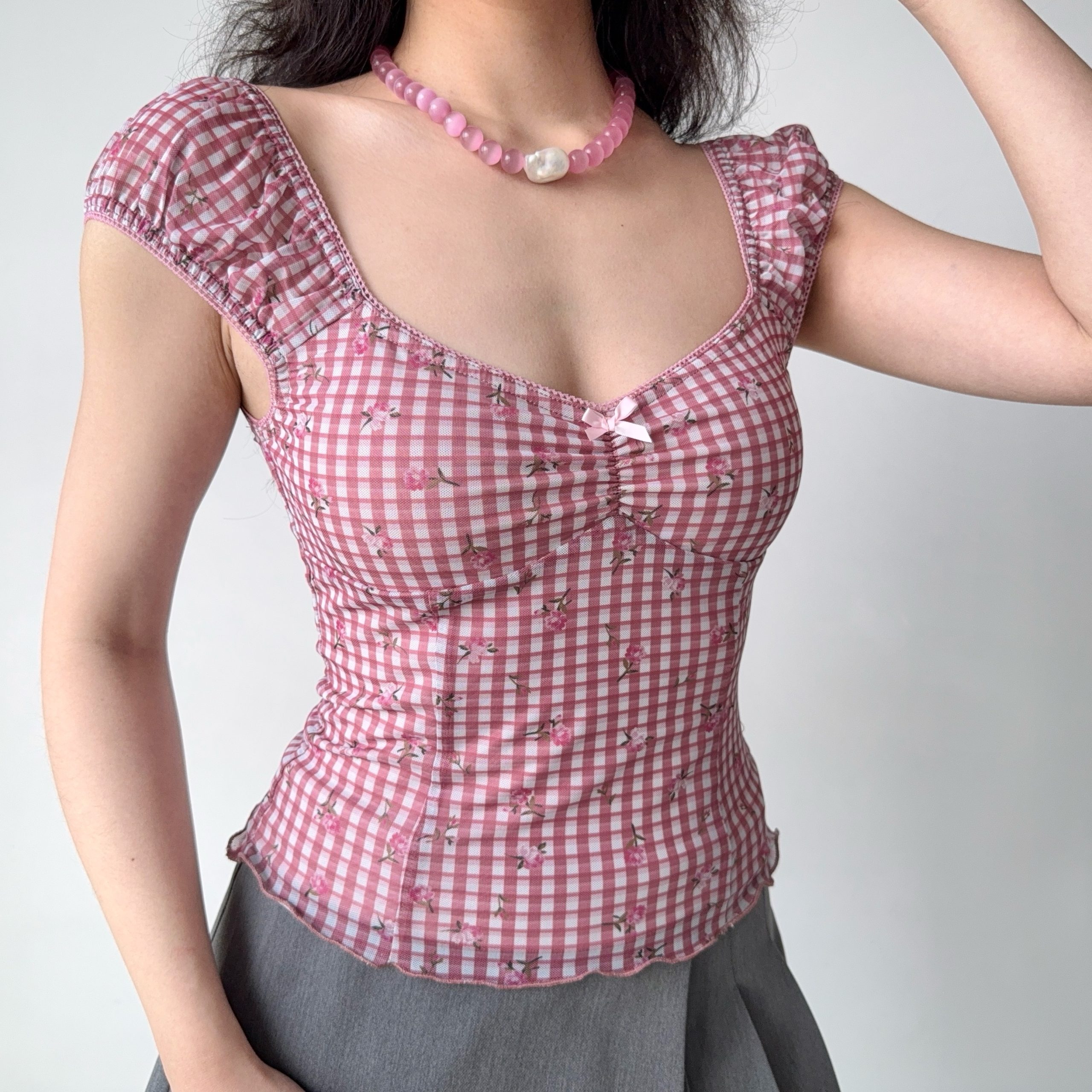Stylish Retro Printed Plaid Puff Sleeve T-shirt: Outfit Ideas for Women