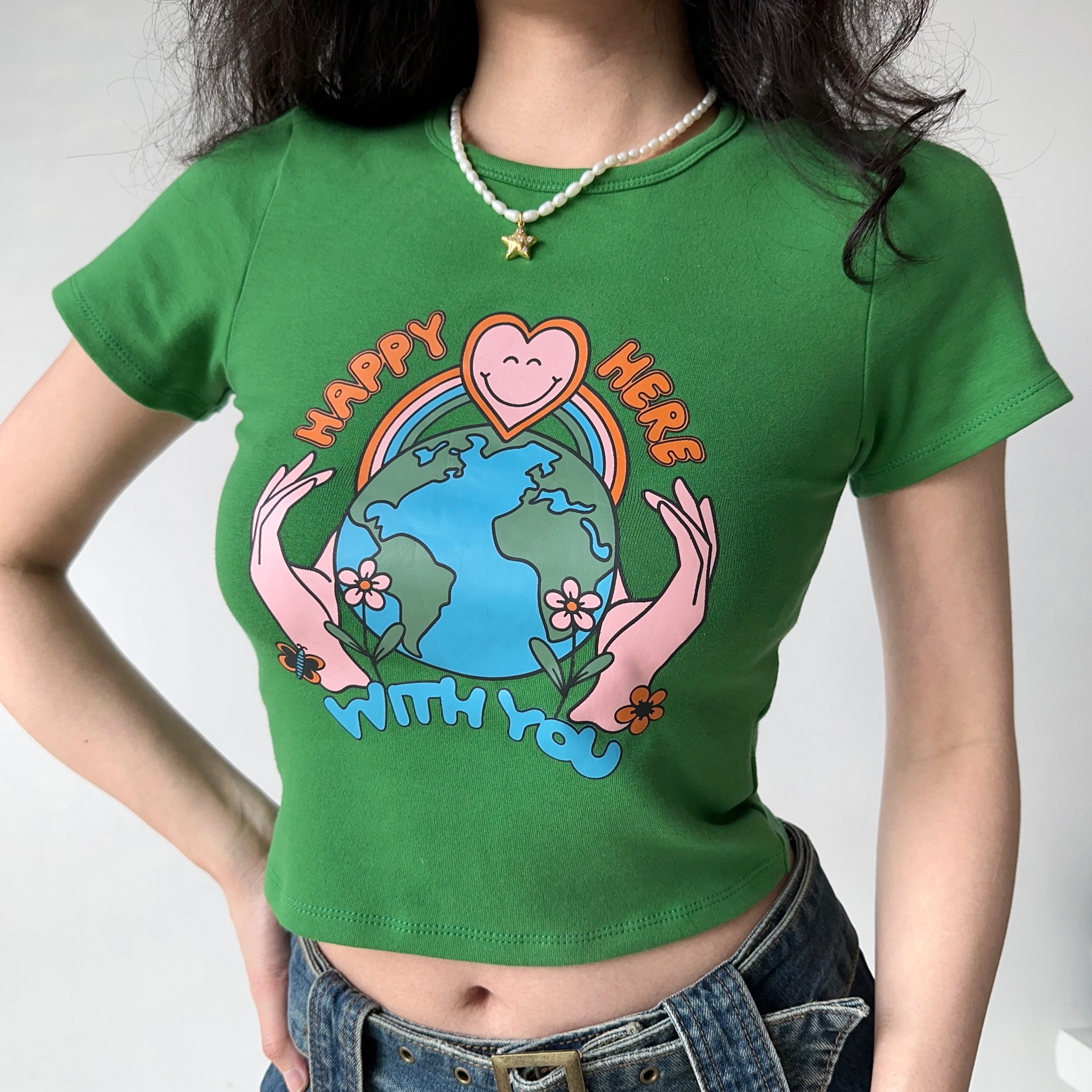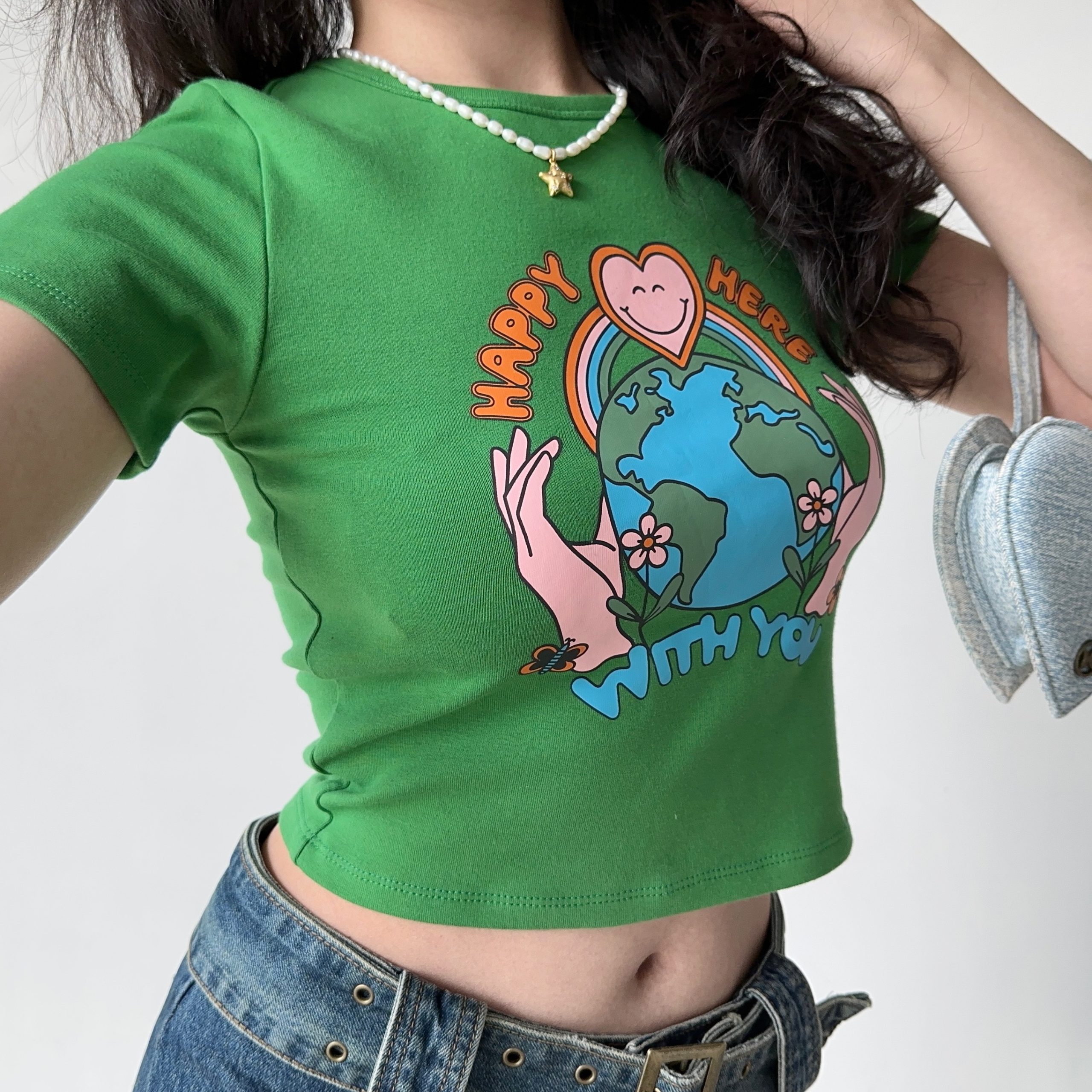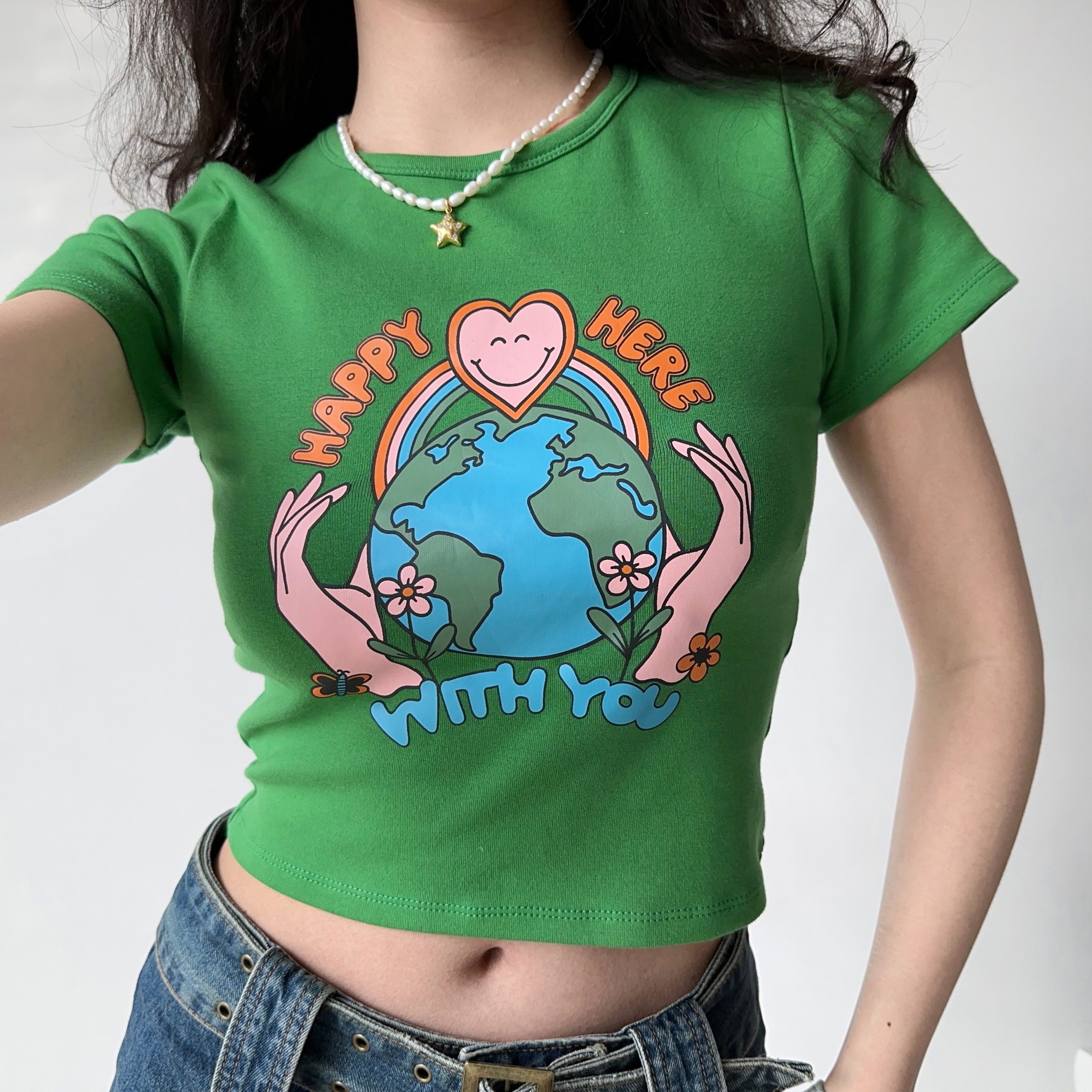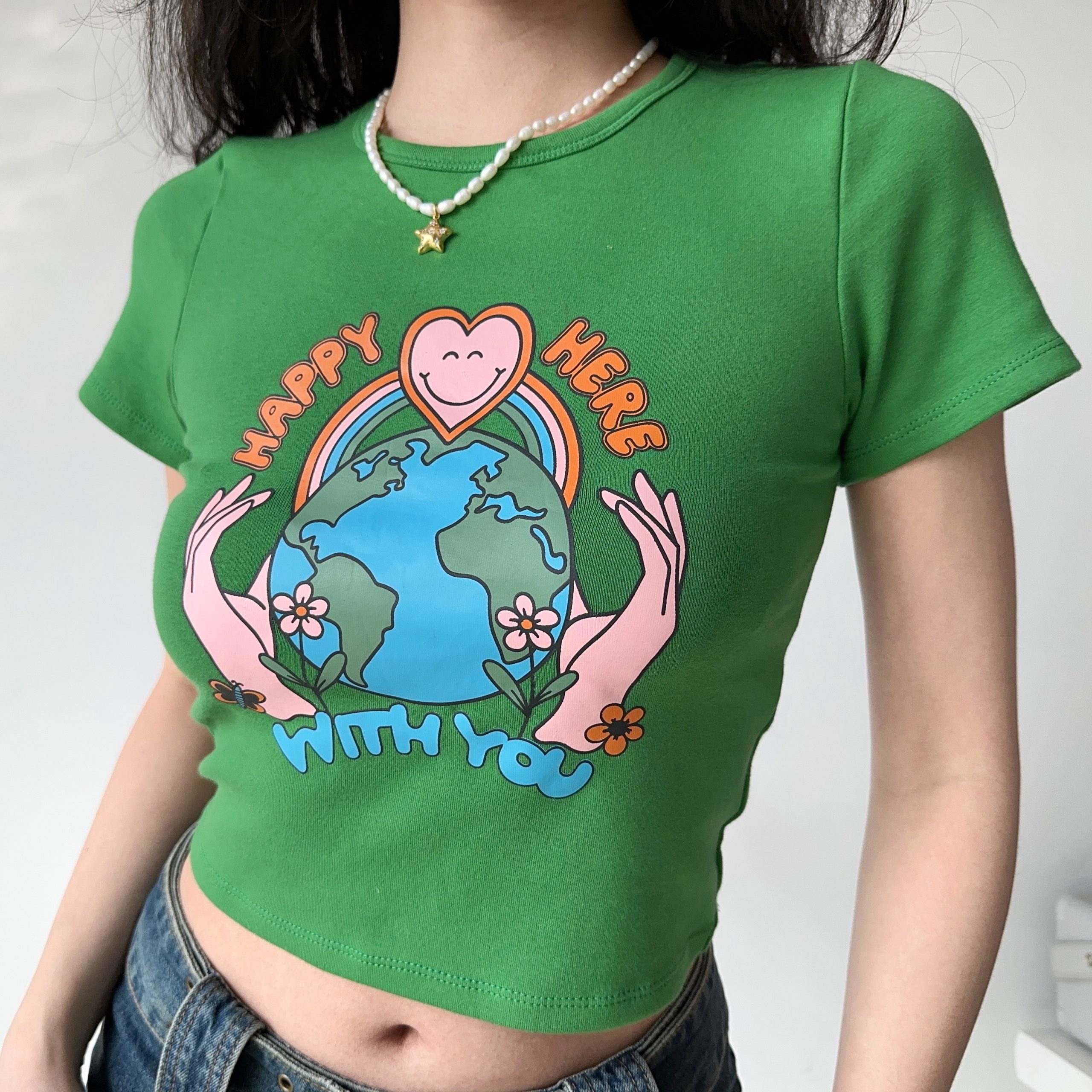 Retro Printed Neck Short Sleeve T- shirt Women, High Waisted Top High-quality product featuring prom dresses, spring outfits, business casual outfits and more. Modern design that fits the latest trends. Premium materials ensure durability and comfort. Order now for special offers! Product designed with attention to every detail. Suitable for all occasions and personal styles.