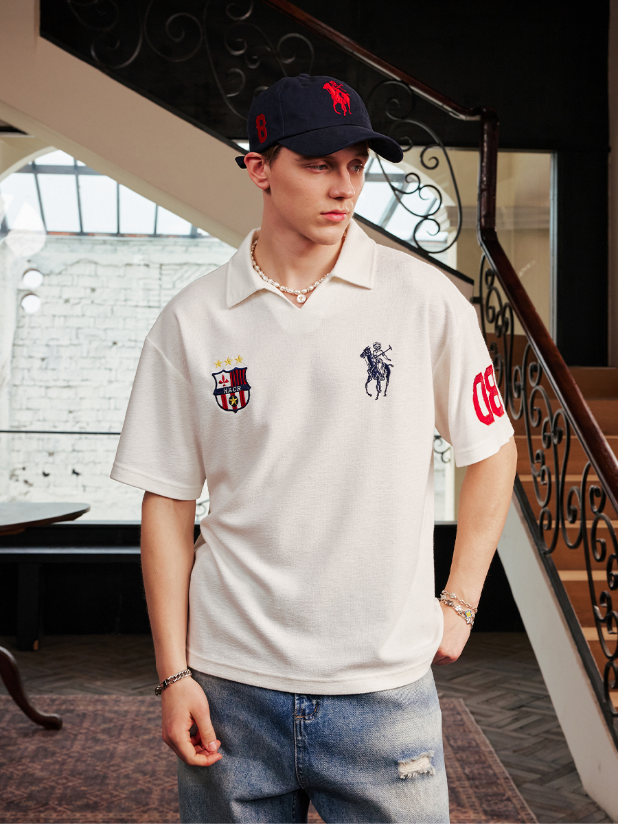 Retro Seagull Collar Embroidered Short Sleeve Polo ShirtJersey Towel Fabric Vintage pired, Casual Wear High-quality product featuring prom dresses, spring outfits, business casual outfits and more. Modern design that fits the latest trends. Premium materials ensure durability and comfort. Order now for special offers! Product designed with attention to every detail. Suitable for all occasions and personal styles.