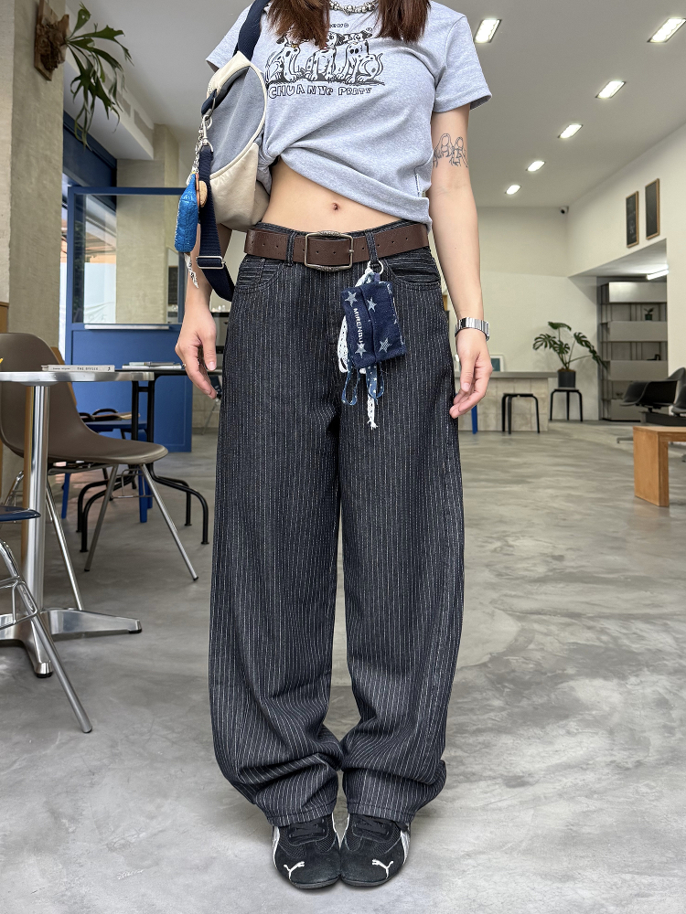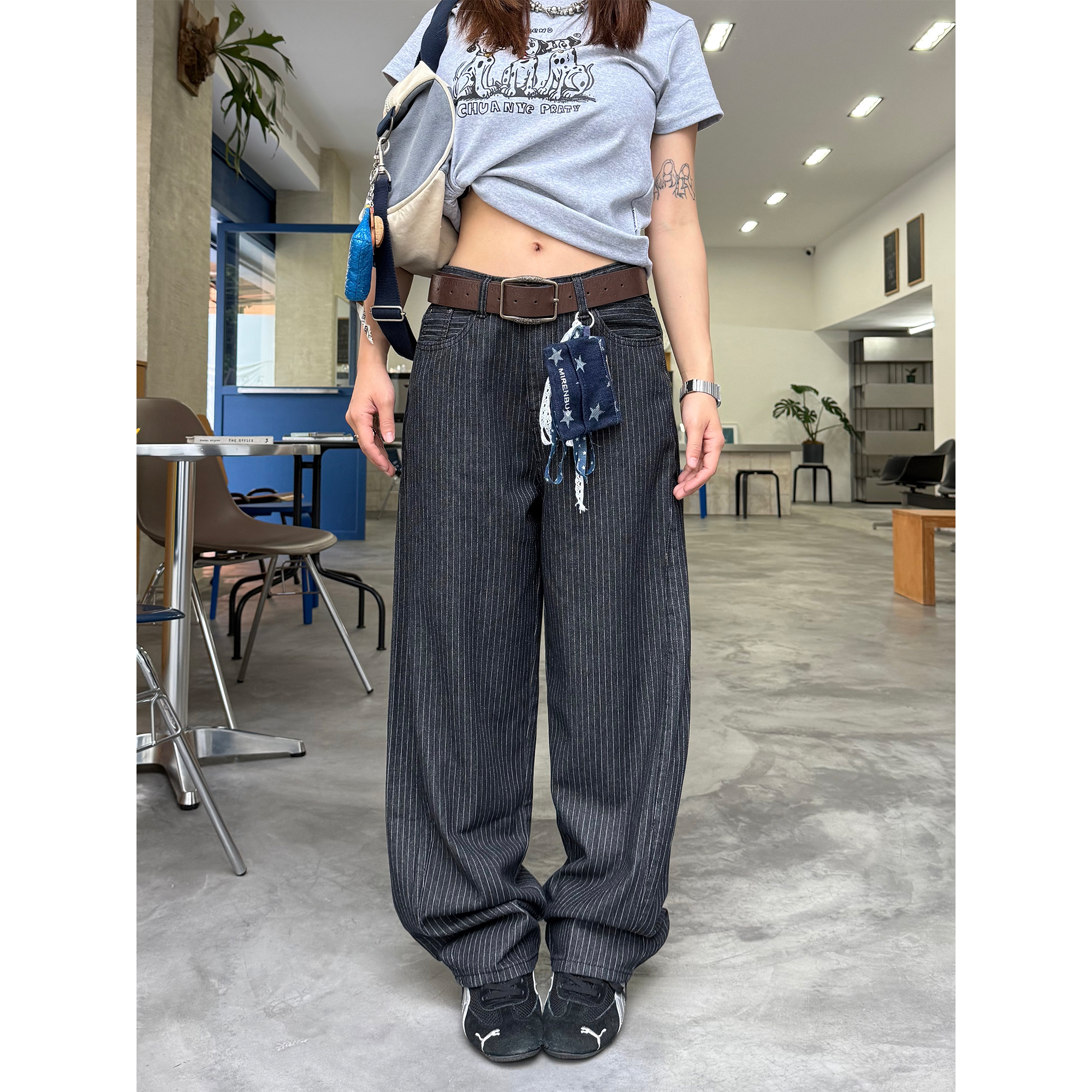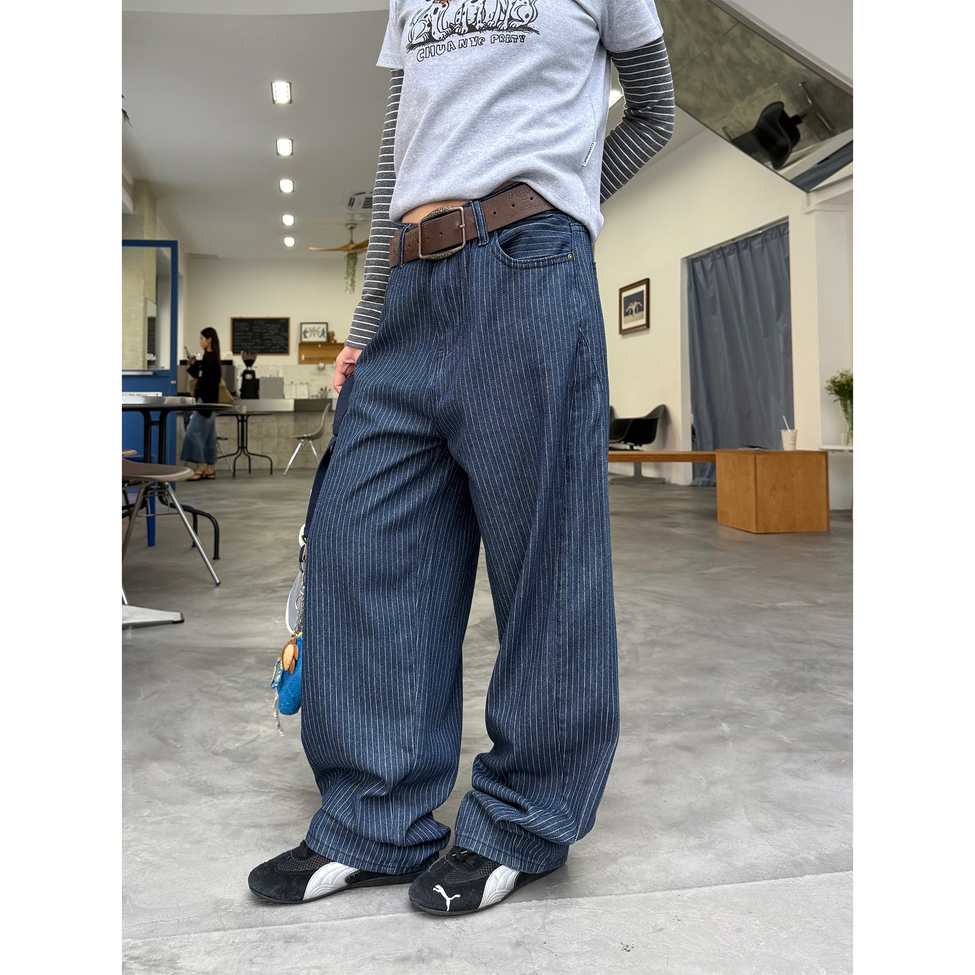 Retro Striped Loose Straight Leg Denim Jeans Men, Women Soft – Outfit Ideas